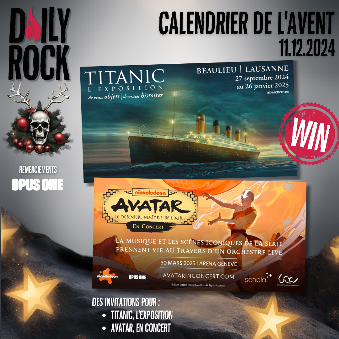 Aujourd’hui pour le 11.12.2024, nous vous proposer des invitations pour l’Exposition Titanic au Théâtre de Beaulieu de Lausanne jusqu’au 26 janvier 2025, ainsi que pour le spectacle Avatar, le dernier maître de l’air en concert à l’Arena de Genève le 30 mars 2025.