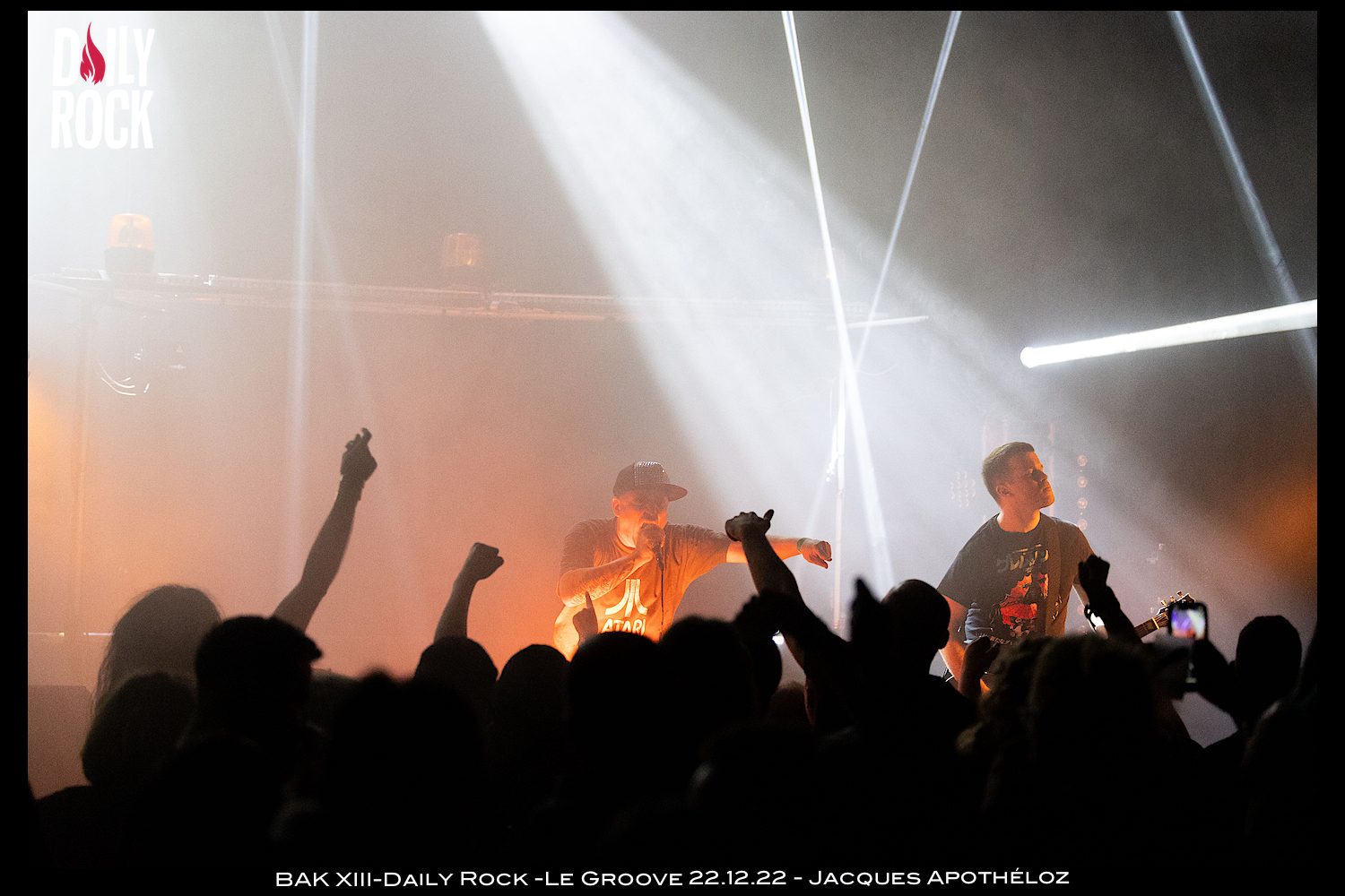 Accueil Concerts BAK XIII – Daily Rock Christmas Party, Le Groove – 22 décembre... ConcertsPhotos BAK XIII – Daily Rock Christmas Party, Le Groove – 22 décembre 2022 Par Jacques Apothéloz - 26 décembre 2022 0 FacebookTwitterWhatsAppLinkedinEmailTelegram Retour en images sur le concert de Bak XIII au Groove lors de la Daily Rock Christmas Party du 22 décembre 2022 avec les photos de Jacques Apothéloz. ARTICLES CONNEXESPLUS DE L'AUTEUR Photos BATTLE BEAST + DOMINUM + MAJESTICA – Salle Métropole, Lausanne – 9 décembre 2025 Photos CORONER + SILVER DUST + KASSOGTHA – Les Docks, Lausanne – 28 novembre 2025 Concerts ROD STEWART – Hallenstadion Zurich – 5 décembre 2025 PublicitéLes plus lus Europe de passage à Lausanne News 3 mai 2016 Bernard Adamus @ l’Impérial 15.12.2016 XXXX - Non classé 16 décembre 2016 THE HOOTERS prévoit une escale helvétique ! News 30 juillet 2018 SEEDS OF MARY : nouveau titre disponible en vidéo ! News 9 octobre 2017