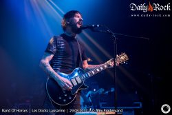 C’est la rentrée pour tout le monde, mais là pas de quoi se lamenter car c’est celle des Docks de Lausanne, qui ont prévu un semestre bien costaud. Le programme de ce mercredi annonçait Susto comme un groupe de quatre barbus souriants et une charmante bassiste. Alors c’est un peu à la surprise générale qu’à 20h30, un type, pas barbu du tout, arrive seul sur scène accompagné uniquement de sa guitare acoustique. C’est Justin Osborne, leader du groupe, qui ouvre donc pour ses potes de Band of Horses. Avec une chouette voix et sous un éclairage très modeste, il balance des compos folk-country-rock qui sont plutôt sympas, mais sans plus. Après quelques morceaux, il sera rejoint par Ben Bridwell pour un duo, ce qui permet de rattraper un peu le quota barbu annoncé. Pour ma part cela faisait très longtemps que je n’avais pas vu la tête d’affiche participer au concert de sa première partie. Alors bravo et merci pour cette collaboration très spontanée.