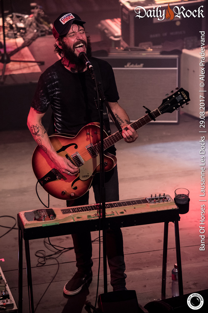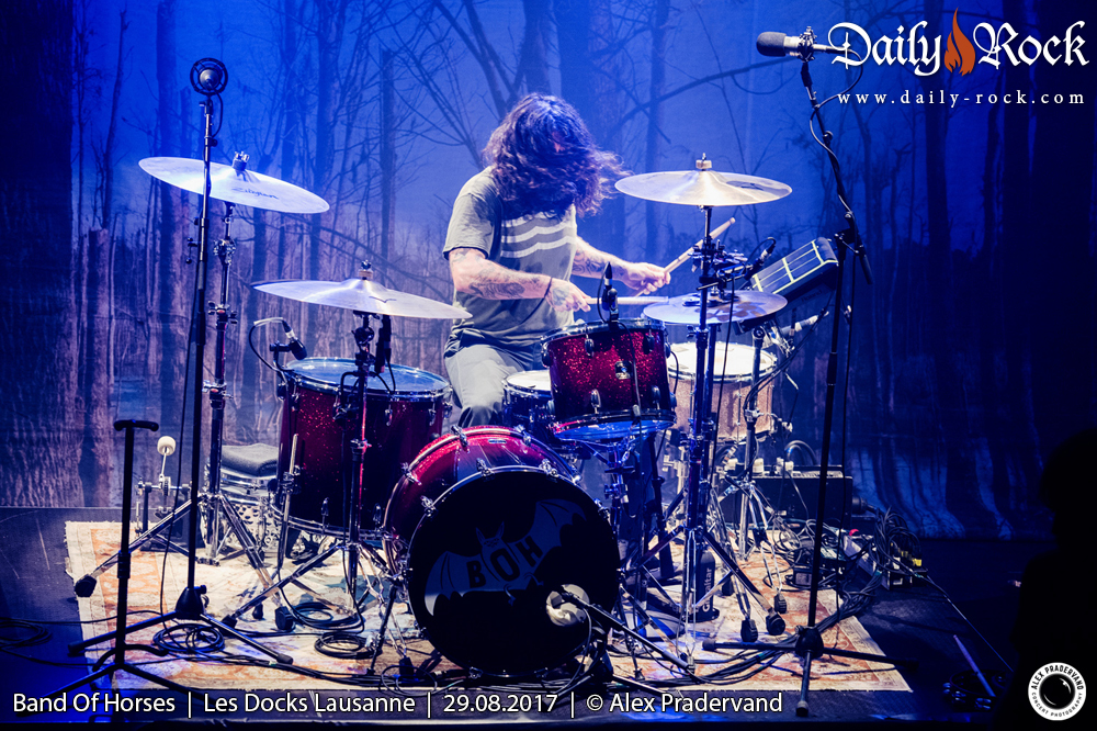 Band Of Horses, eux sont bien au complet avec 5 musiciens. La setlist posée devant nous annonce rien de moins que 19 morceaux pour un concert qui durera une heure et demie. Le groupe a l’air de bien s’amuser sur scène, n’hésitant pas à se vanner entre les morceaux. Cela fait un peu potes en vacances en Europe, mais au moins ce n’est pas prise de tête. Plus de dix ans de carrière et 5 albums au compteur, de quoi avoir du matériel pour bien remplir une setlist qui sera quand même logiquement consacrée à ‘Why Are You Ok’ sorti en 2016 (‘Casual Party’, ‘In A Drawer’, ‘Throw My Mess’ ou encore ‘Solemn Oath’). Pour ma part, j’avais découvert ce groupe en 2010 avec ‘Infinite Arms’ et son superbe ‘NW Apartment’ (joué ce soir). Par la suite je n’avais pas tellement eu occasion de m’intéresser à Band Of Horses. Ce soir j’ai vite vu que j’avais eu tort.