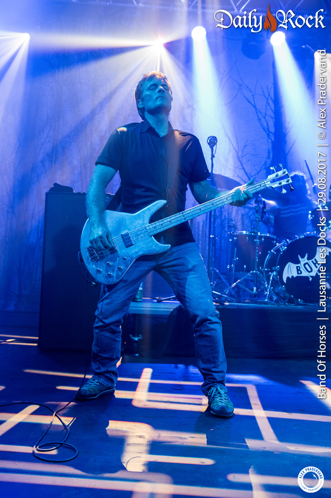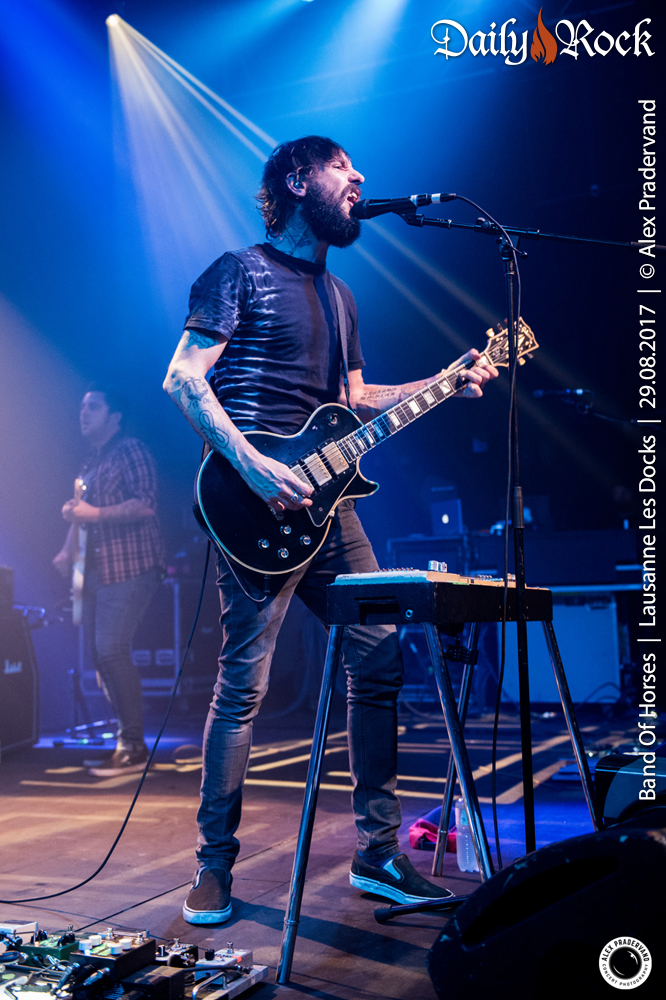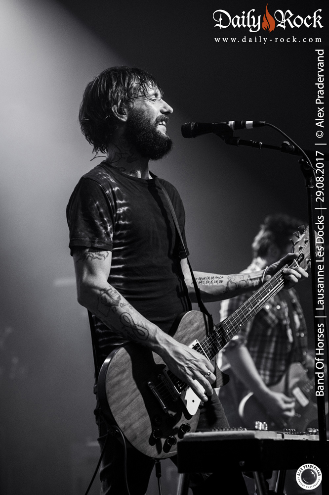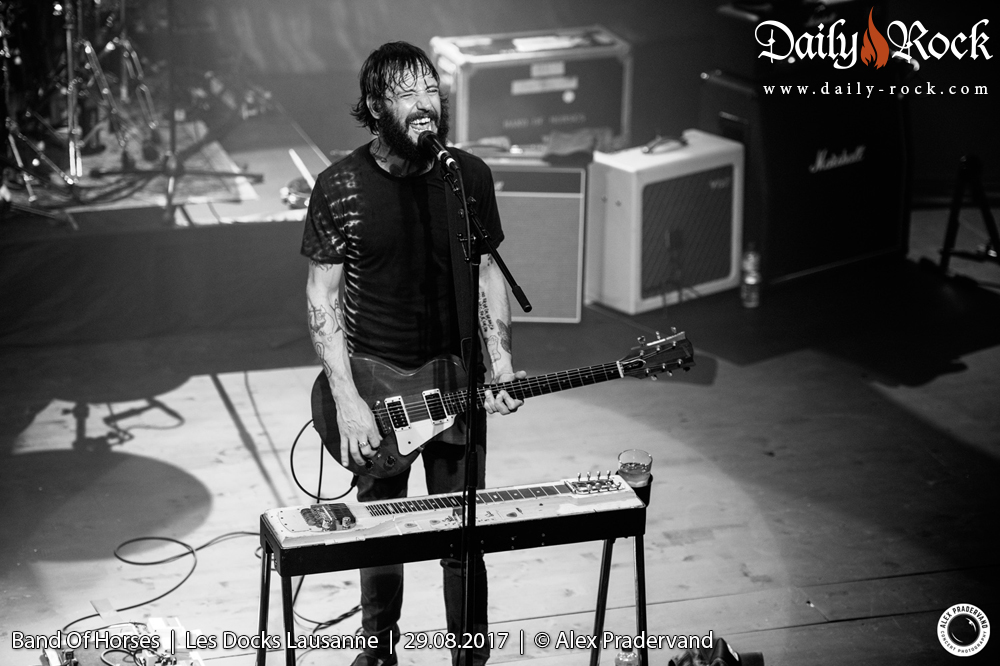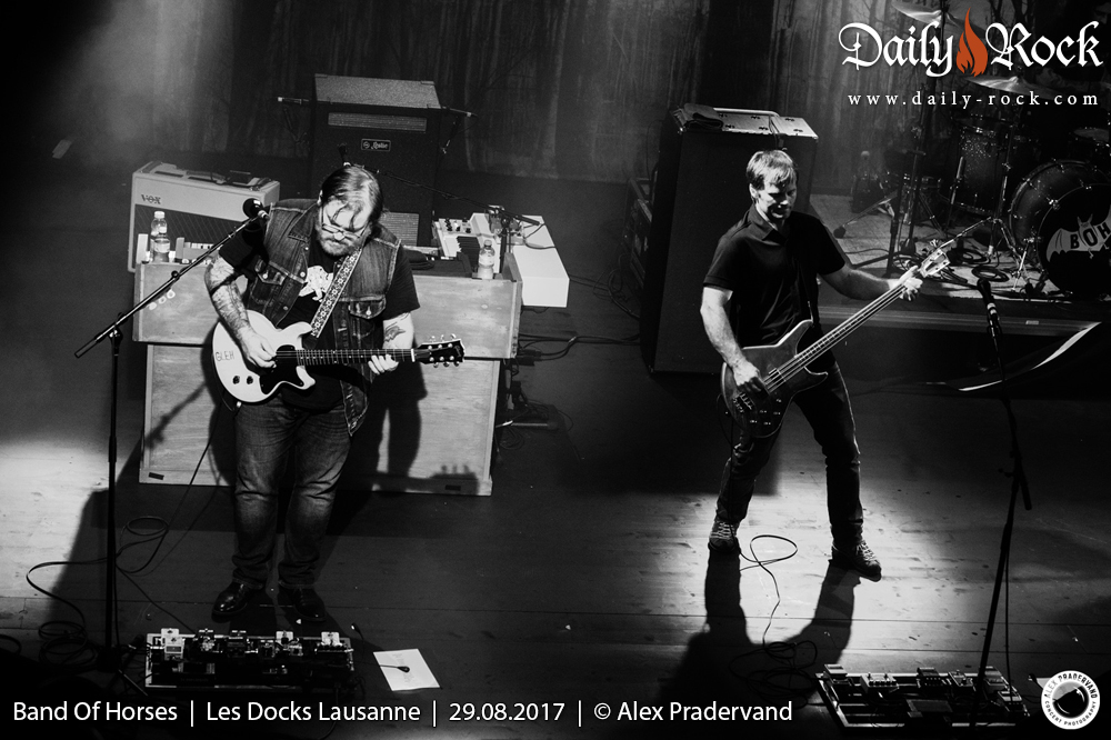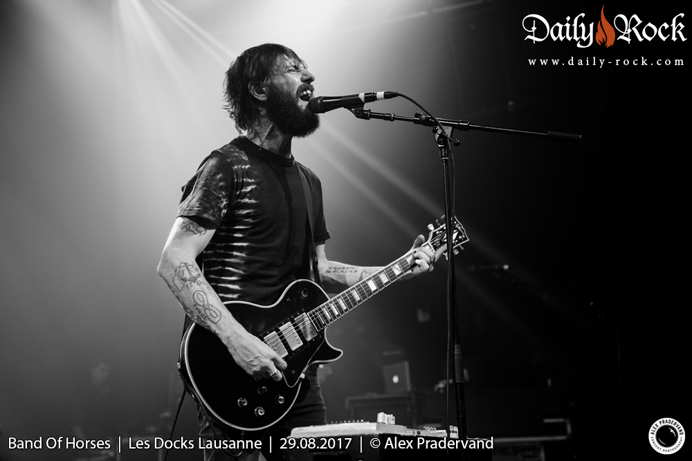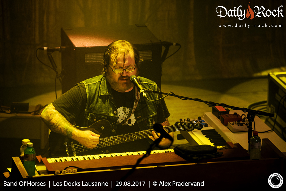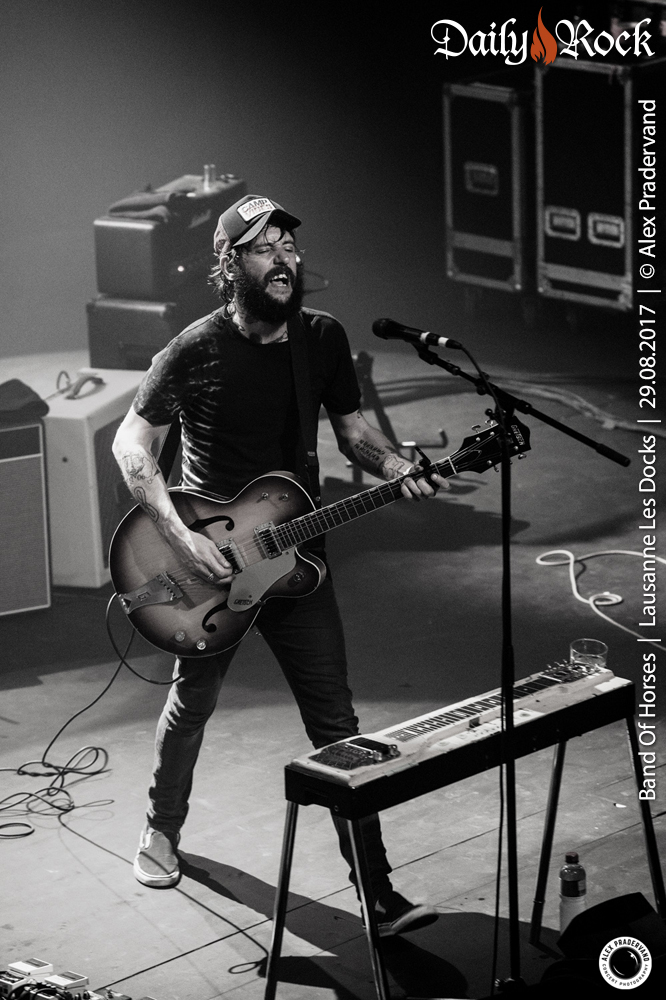 C’est la rentrée pour tout le monde, mais là pas de quoi se lamenter car c’est celle des Docks de Lausanne, qui ont prévu un semestre bien costaud. Le programme de ce mercredi annonçait Susto comme un groupe de quatre barbus souriants et une charmante bassiste. Alors c’est un peu à la surprise générale qu’à 20h30, un type, pas barbu du tout, arrive seul sur scène accompagné uniquement de sa guitare acoustique. C’est Justin Osborne, leader du groupe, qui ouvre donc pour ses potes de Band of Horses. Avec une chouette voix et sous un éclairage très modeste, il balance des compos folk-country-rock qui sont plutôt sympas, mais sans plus. Après quelques morceaux, il sera rejoint par Ben Bridwell pour un duo, ce qui permet de rattraper un peu le quota barbu annoncé. Pour ma part cela faisait très longtemps que je n’avais pas vu la tête d’affiche participer au concert de sa première partie. Alors bravo et merci pour cette collaboration très spontanée.