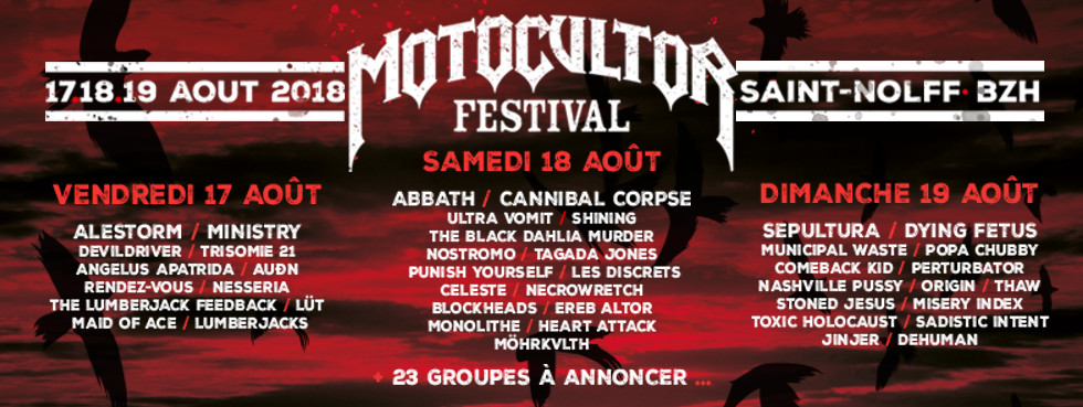 Festival désormais incontournable pour beaucoup de métalleux, la nouvelle édition du Motocultor Festival aura lieu les 17, 18 et 19 août 2018 à Saint-Nolff (56). Une affiche qui reste d’excellente qualité notamment grâce à la venue de Sepultura et Cannibal Corpse.