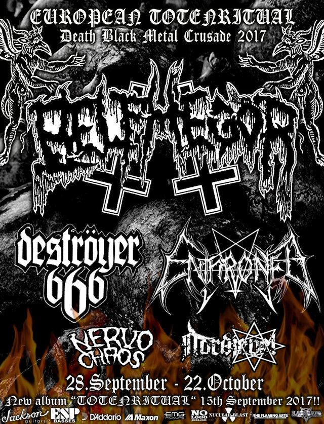 Belphegor va embarquer au mois de septembre pour une tournée aux quatre coins de l’Europe afin de promouvoir son nouvel album ‘Totenritual‘ dont la parution est prévu le 15 septembre via Nuclear Blast. Ils seront accompagnés par Deströyer666, Enthroned, Nervochaos et Nordjevel.