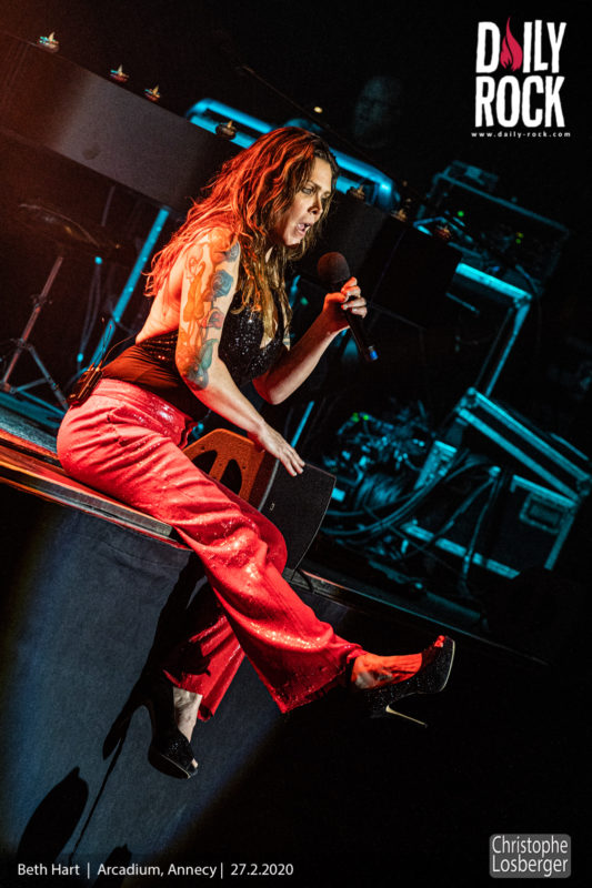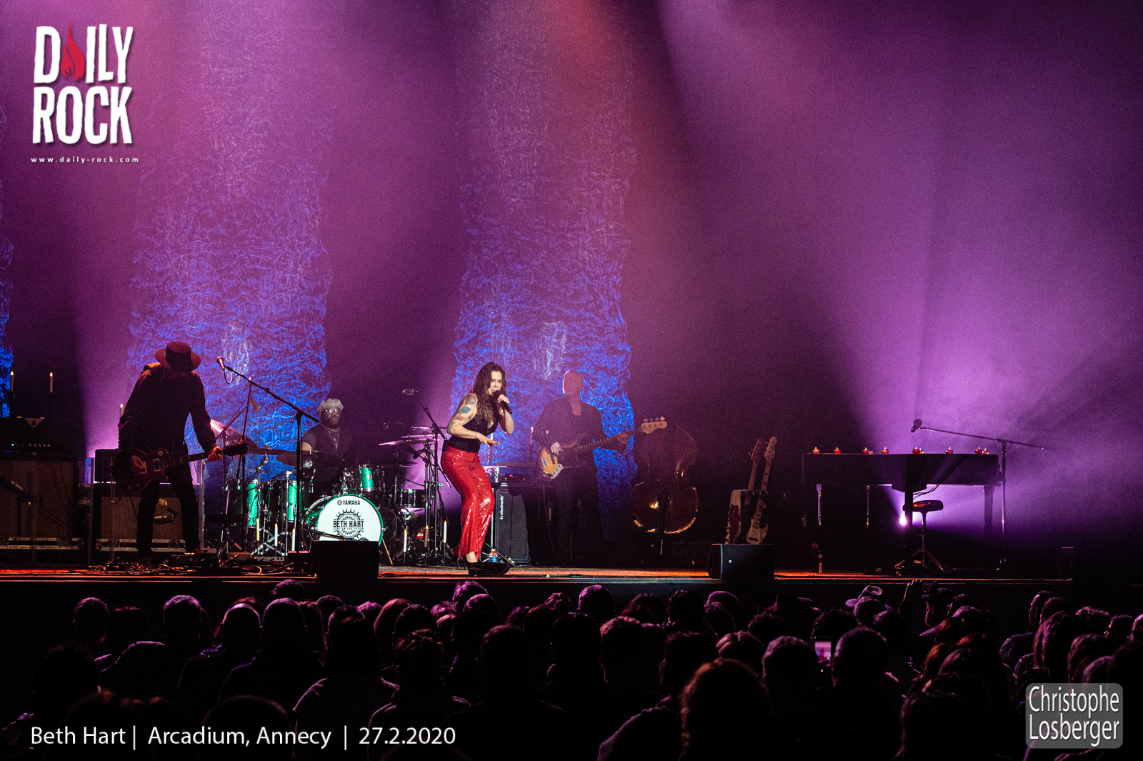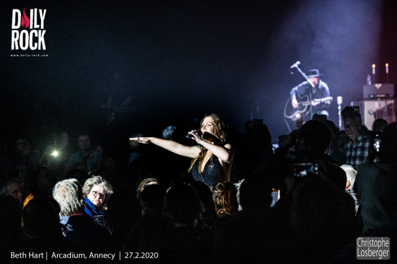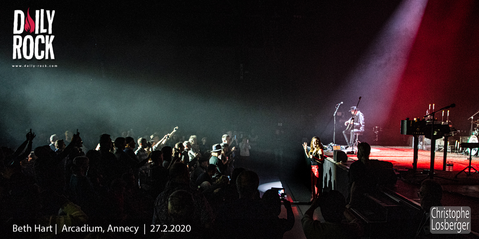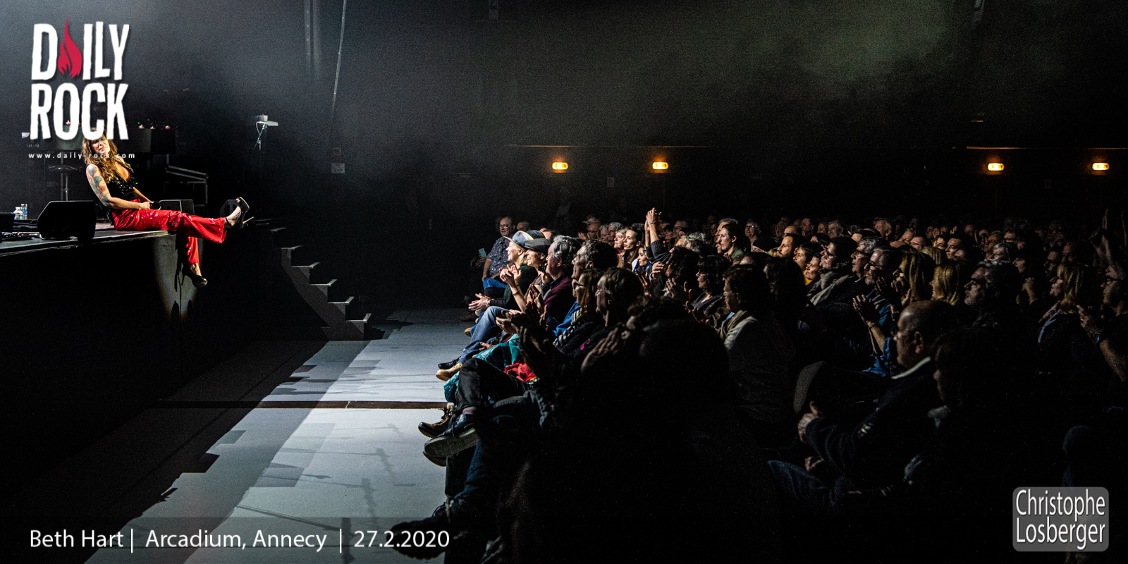 La tournée européenne de Beth Hart passait par l’Arcadium à Annecy le 27 février, peu de temps après son passage à Genève en décembre 2019. J’avais ainsi l’occasion de rattraper cette date que j’avais manqué. Le lendemain elle sera à Paris pour 2 soirs de concerts qui s’annoncent intéressants puisqu’un soir sera acoustique principalement au piano et le deuxième soir sera avec son groupe. Annecy était donc l’occasion de présenter une version mixte en un seul concert avec des chansons très intimistes même lorsque tout le groupe est présent. Beth Hart fera d’ailleurs son entrée dans le public en serrant des mains et rencontrant tactilement son public: en démontrant en passant qu’elle n’est pas une psychosée du coronavirus. Au final un excellent concert, tout en nuances et en subtilité!