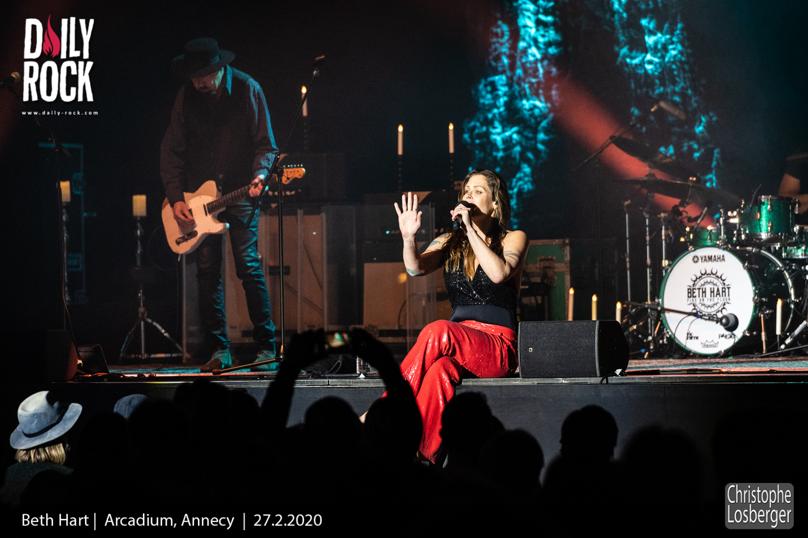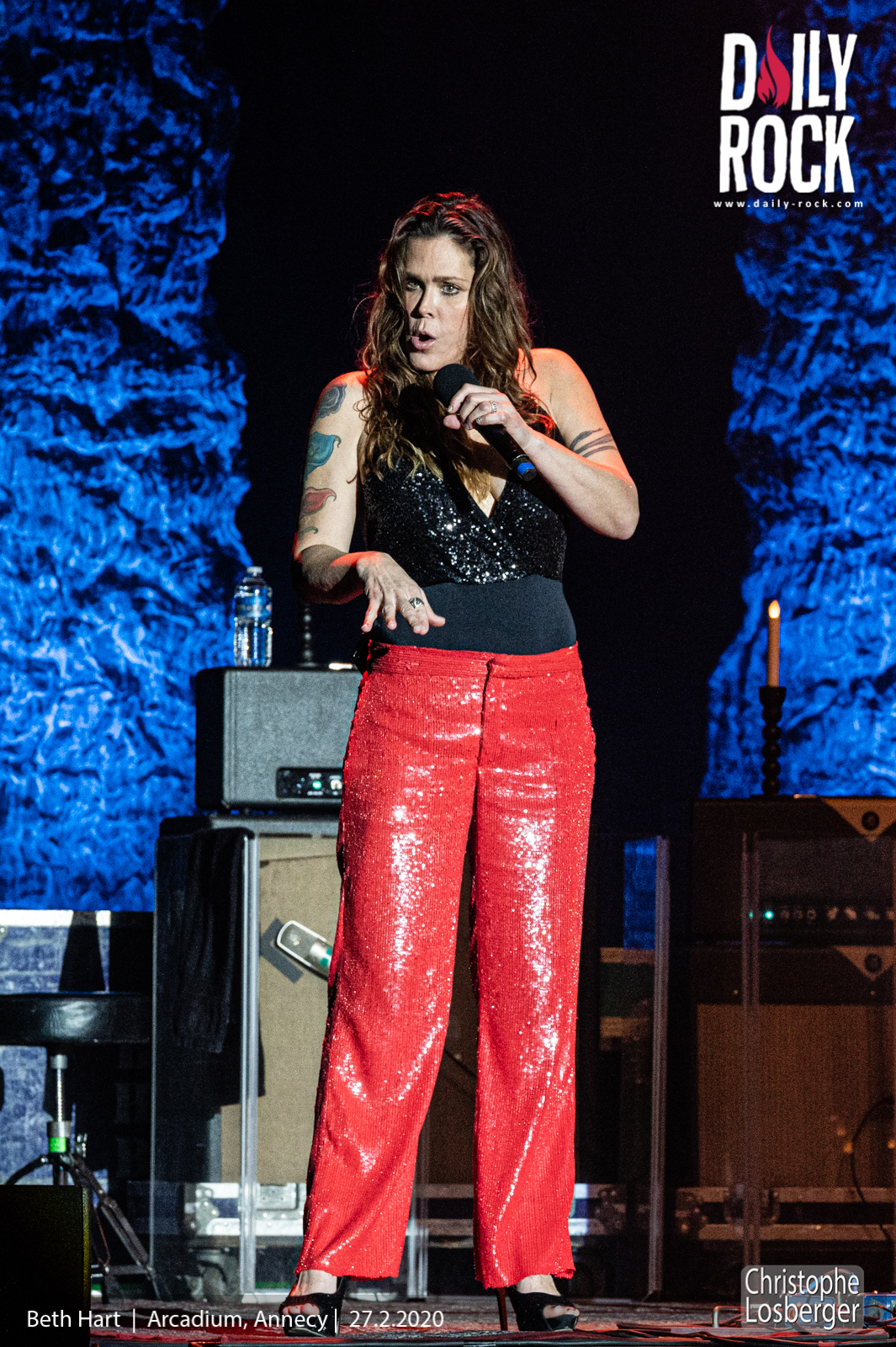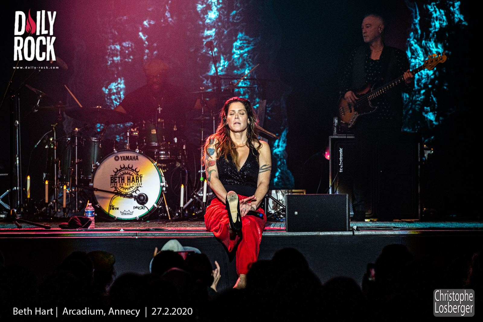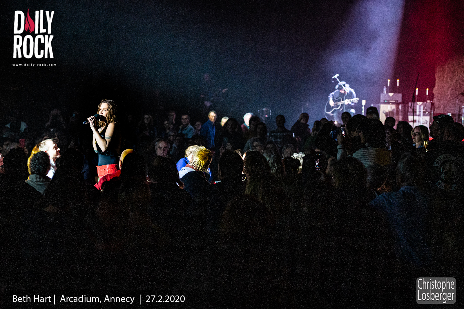 La tournée européenne de Beth Hart passait par l’Arcadium à Annecy le 27 février, peu de temps après son passage à Genève en décembre 2019. J’avais ainsi l’occasion de rattraper cette date que j’avais manqué. Le lendemain elle sera à Paris pour 2 soirs de concerts qui s’annoncent intéressants puisqu’un soir sera acoustique principalement au piano et le deuxième soir sera avec son groupe. Annecy était donc l’occasion de présenter une version mixte en un seul concert avec des chansons très intimistes même lorsque tout le groupe est présent. Beth Hart fera d’ailleurs son entrée dans le public en serrant des mains et rencontrant tactilement son public: en démontrant en passant qu’elle n’est pas une psychosée du coronavirus. Au final un excellent concert, tout en nuances et en subtilité!