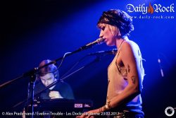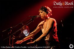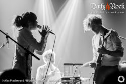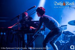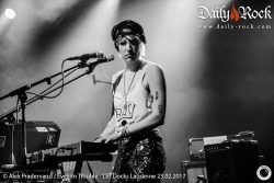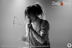 En amuse bouche, on a eu droit à Evelinn Trouble. L’artiste inclassable zurichoise se produisait en duo et elle a essayé d’électriser (tant bien que mal) le public avec ses morceaux pop, folk, punk revisités à la sauce electroclash. Le duo faisant usages de vieux synthés et boîtes à rythme pour ce concert. Celle qui dit que « ce qui dérange et ce qui n’est pas consensuel l’intéresse » a offert une prestation honorable sous les timides et polis applaudissements de l’audience. A voir, l’assistance était bien plus subjuguée par leurs pantalons-leggins bigarrés et psychés que par leur musique. Au final, on aurait pu presque rester sur sa faim.