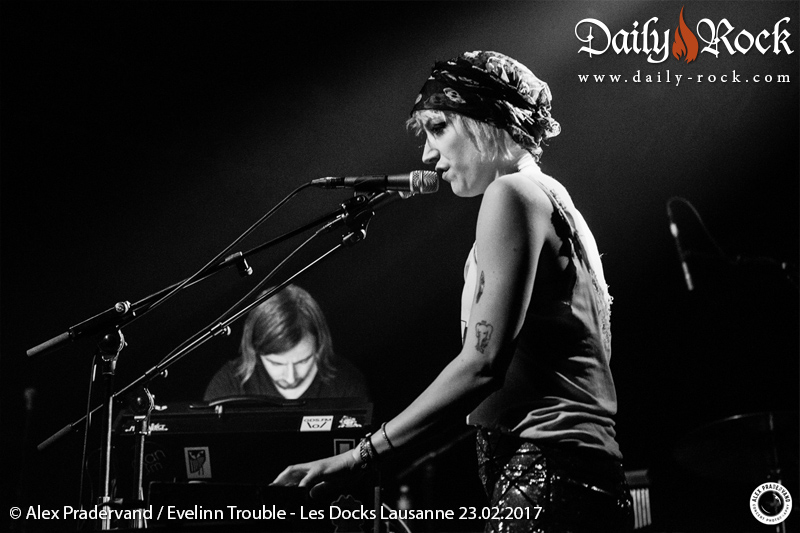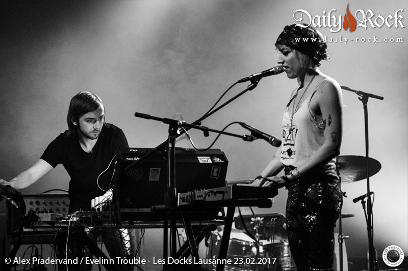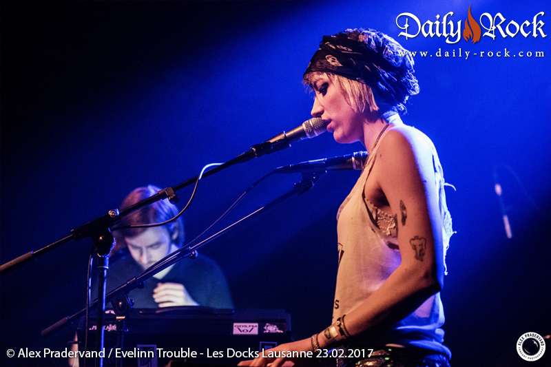 En amuse bouche, on a eu droit à Evelinn Trouble. L’artiste inclassable zurichoise se produisait en duo et elle a essayé d’électriser (tant bien que mal) le public avec ses morceaux pop, folk, punk revisités à la sauce electroclash. Le duo faisant usages de vieux synthés et boîtes à rythme pour ce concert. Celle qui dit que « ce qui dérange et ce qui n’est pas consensuel l’intéresse » a offert une prestation honorable sous les timides et polis applaudissements de l’audience. A voir, l’assistance était bien plus subjuguée par leurs pantalons-leggins bigarrés et psychés que par leur musique. Au final, on aurait pu presque rester sur sa faim.