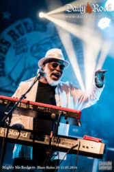 Le clou de cette première soirée était bien évidemment Mighty Mo Rodgers, présent à Crissier avec son excellent band italien (Pablo Leoni, Walter Monini, Luca Giordano) qui a soutenu à merveille la voix chaude et les claviers de Mighty Mo. Mighty Mo Rodgers s’est baladé avec maestria entre différents types de musique afro-américaines : blues principalement, rythm’n’blues, soul et même un passage reggae, qui n’est qu’une autre forme d’expression du blues comme le rappellera le Docteur ès blues Might Mo. Il avait pour l’occasion créé une chanson ‘Blues Rules’, comme l’avait fait Wes Mackey lors d’une des premières éditions du festival.