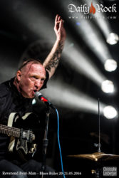 The Chainsaw Cowboys, sont venus en voisin depuis l’autre côté du lac (quasiment) secouer les spectateurs en cette fin de soirée avec un set de dirty blues super bien léché : bons riffs de guitare, bonne voix et percussions percutantes, qui préparait gentiment le public à la dernière prestation de la soirée, celle du déjanté et néanmoins bernois Révérend Beat-Man, dont l’Eglise est celle du blues trash à 185% et qui nous a révélé comme à son habitude les liens entre le blues et le punk et entre le gospel et le death metal. Avec le patron de Voodoo Records on ne sait jamais sur quel pied on est en train de danser !