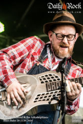 Le Révérend KM Williams, le regard sévère, est lui venu du Texas pour nous parler de sa foi dans un blues ancien et moderne à la fois, en s’accompagnant soit d’une guitare slide, soit d’une cigar box à une corde et d’un stompbox. Une belle découverte que la voix et le chant de ce révérend-là. Le Révérend Deadeye qui le suivra sur scène est déjà beaucoup moins conventionnel : d’abord on ne sait pas trop à quelle Eglise il appartient, mais on sait que ses ancêtres étaient bel et bien des missionnaires. Accompagné d’un batteur, son blues est puissant : un blues garage habité annonçant la venue du rock’n’roll et tous ses apôtres !