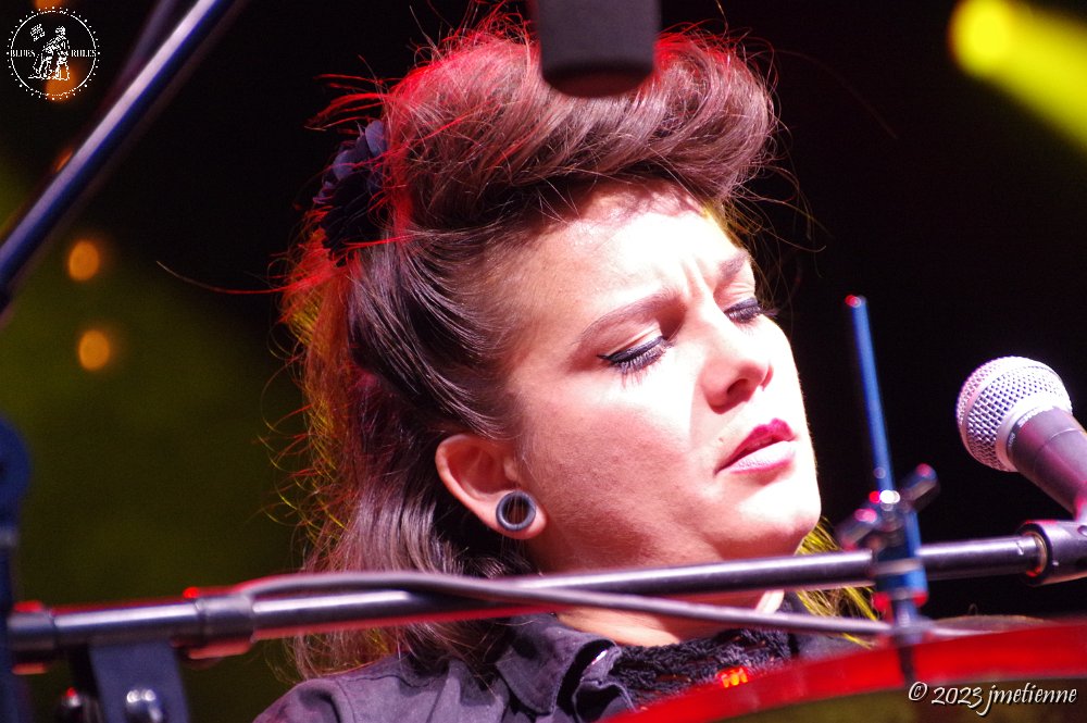 La suissesse Zazou Haïfa ouvre donc la soirée avec son groupe Talking Back sur la petite scène, puis viennent ensuite, sur la grande scène, des stars de tous les continents : l’australienne Molly Coddlecream, avec son mari Stringybark McDowell, tout deux au look sauvage et poussiéreux qui délivre un blues assez original. L’américaine du Midwest Molly Gene, déjà venue seule au Blues Rules en 2012, 2016 et 2018, vient cette fois en duo avec la californienne Sarah Rogo. Elles donnent un concert à deux guitares slides pour un voyage parfois tranquille et parfois rock.