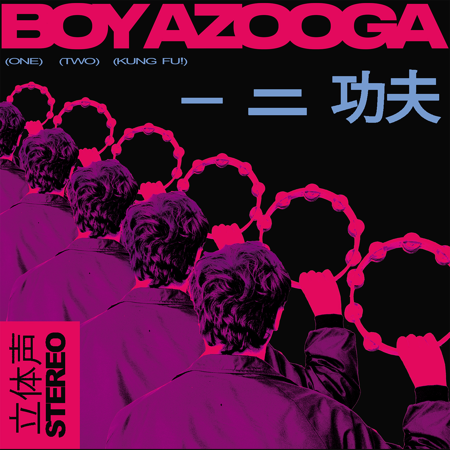 Davey Newington, l’homme qui se cache Boy Azooga, n’est pas tombé de la dernière pluie. Né dans une famille de musiciens, d’un père violoniste et d’une mère clarinettiste, Davey commence la batterie à six ans, avant d’empoigner une guitare et de se mettre au chant. Multi-instrumentiste de talent, bourré de références, il s’attaque à ‘One, Two, Kung Fu’ avec trois acolytes gallois.