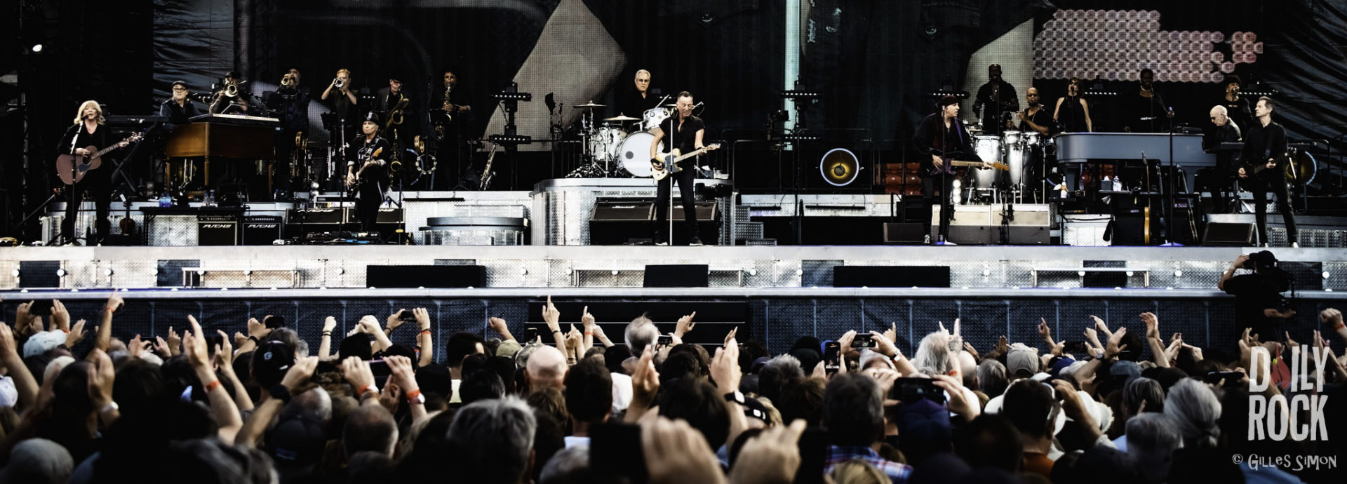 10 ans après un inoubliable concert au stade de Genève, nous avions le plaisir de retrouver The Boss sur scène en une magnifique soirée de printemps. Public bigarré, intergénérationnel, venu en couple ou en famille, tous les ingrédients étaient réunis pour célébrer un rock diablement efficace et sans artifices.