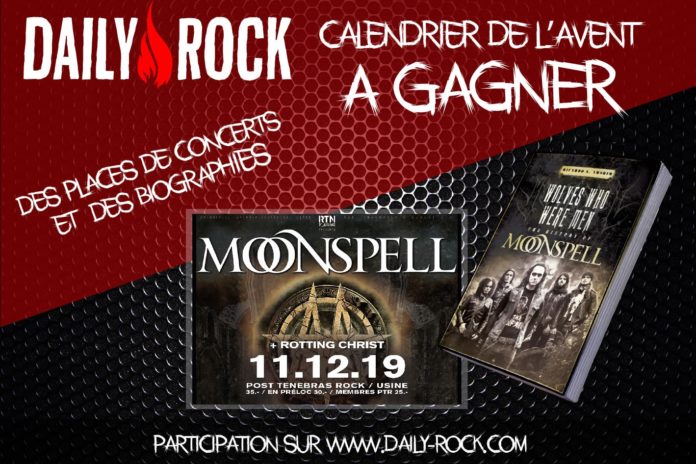 Concours Archives Calendrier de l’Avent 2019 : Concours Moonspell By Carlos Mühlig - 7 décembre 2019 0 FacebookTwitterWhatsAppLinkedinEmailTelegram Tentez votre chance pour remporter des places de concerts et des biographies du groupe Moonspell. Pour participer au tirage au sort, veuillez remplir le formulaire ci-dessous : Erreur : Formulaire de contact non trouvé !