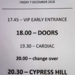 22:30 Fin du concert de Cypress Hill. On récupère le merch et on constate qu’on a quand même vendu quelques articles. On boit encore quelques verres, tranquille au backstage. Sen Dog de Cypress Hill nous rend visite, on discute quelques minutes, on lui offre le dernier CD et on prend quelques photos. Echange super sympa et décontracté.