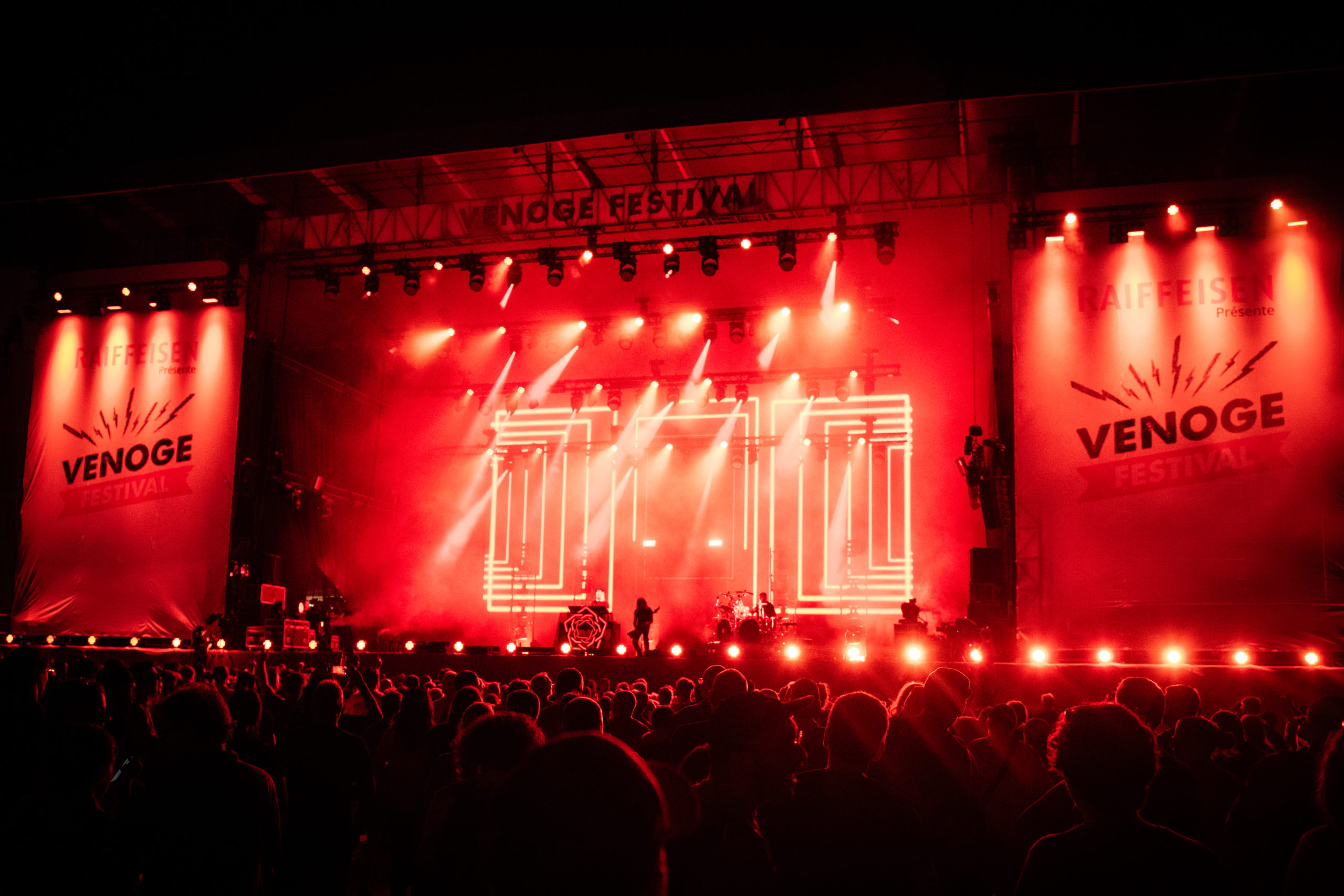 On retourne sur la Riverstage pour The Young Gods qui ont remplacé à la toute dernière minute The Prodigy. Les Britanniques ont brusquement annulé les dates restantes de leur tournée deux jours avant leur passage au Venoge Festival. Sacré challenge pour les organisateurs et programmateurs qui ont réussi à convaincre l’un de nos fers-de-lance musicaux à rentrer de vacances. Très beau concert, nerveux, électrique et précis. Le jeu clair-obscur / blanc-noir des projecteurs soulignait parfaitement la musique de nos Helvètes underground. On a particulièrement apprécié l’interprétation de « Gasoline Man », d’une énergie folle, Franz Treichler toujours aussi envoûtant au chant.