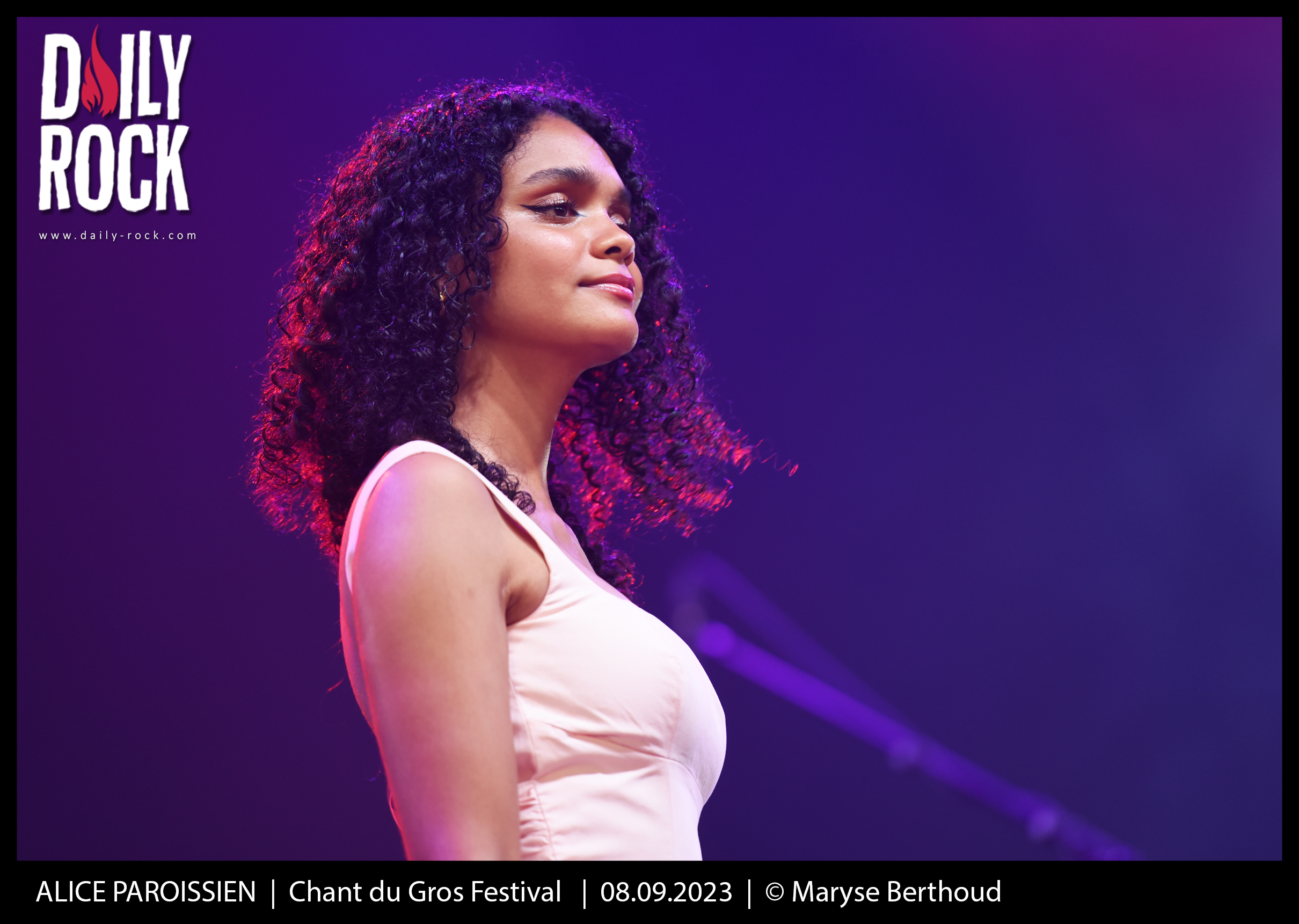 AccueilPhotosCHANT DU GROS FESTIVAL - 8 septembre 2023 Photos CHANT DU GROS FESTIVAL – 8 septembre 2023 Par Daily Rock - 15 septembre 2023 0 0 FacebookTwitterWhatsAppLinkedinEmailTelegram Retour en images sur la soirée du 8 septembre 2023 au Chant du Gros Festival avec les concerts d’Izia, Alice Paroissien et Jenifer par Maryse Berthoud. TagsChant du Gros Festival FacebookTwitterWhatsAppLinkedinEmailTelegram Article précédentECLIPSE + H.E.A.T. – Kofmehl, Soleure – 12 Septembre 2023Article suivantTASH SULTANA – MTELUS – 13 SEPTEMBRE 2023 Daily Rock LAISSER UN COMMENTAIRE Annuler la réponse Commenter : S'il vous plaît entrez votre commentaire! Nom :* S'il vous plaît entrez votre nom ici Email :* Vous avez entré une adresse email incorrecte! Veuillez entrer votre adresse email ici Site : Enregistrer mon nom, email et site web dans ce navigateur pour la prochaine fois que je commenterai. Δ Ce site utilise Akismet pour réduire les indésirables. En savoir plus sur la façon dont les données de vos commentaires sont traitées. A voir aussi Photos BATTLE BEAST + DOMINUM + MAJESTICA – Salle Métropole, Lausanne – 9 décembre 2025 Retour en images sur la soirée du mardi 9 décembre 2025 à la Salle Métropole de Lausanne en compagnie de Majestica, Dominum et de la... 12 décembre 2025 Photos CORONER + SILVER DUST + KASSOGTHA – Les Docks, Lausanne – 28 novembre 2025 En cette fin d'année, le metal suisse est à l'honneur avec cette affiche du 28 novembre 2025 aux Docks. Tout d'abord pour célébrer la sortie... 30 novembre 2025 Voir plus Suivez-nous !17,057FansJ'aime1,439SuiveursSuivre573SuiveursSuivre1,340SuiveursSuivre272AbonnésS'abonner Les plus lus MALIGNANT – Le Cauchemar de la Psychiatrie SYLAK FESTIVAL – 4 au 6 AOUT 2023 Sylak 2022 Jour 1 – 5 août 2022 Sylak 2022 Jour 3 – 7 août 2022 Sylak 2022 Jour 2 – 6 août 2022 Publicité