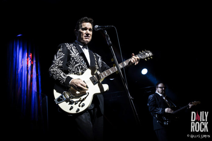 Reprenant le flambeau pile à l’heure prévue, Chris Isaak a su conserver cette bonne ambiance, n’hésitant pas à plaisanter, voire à pratiquer l’autodérision (notamment en évoquant son costume de scène qu’il a comparé à une tenue de patinage artistique…). C’est d’ailleurs un trait marquant du Californien sur scène : le mec est décontracté et souriant. Proche du public également, lui qui n’hésita pas à traverser tout l’auditorium pour un bain de foule dès la troisième chanson. Le surnom de « King of cool » étant libre depuis le passage ad patres de Dean Martin puis de Steve McQueen, il siérait plutôt bien à Chris Isaak. Mais on digresse sur ces « à-côtés » et on oublie de mentionner le principal : les chansons et, surtout, la voix extraordinaire que le natif de Stockton a su préserver de façon exemplaire jusqu’à aujourd’hui. A 67 ans, il s’agit encore de l’un des rares chanteurs qui peut reprendre du Elvis Presley et faire honneur au King (tout court, celui-ci). Il n’a d’ailleurs pas manqué de lui adresser un joli clin d’œil en jouant – ajout de dernière minute à la setlist initiale – la toute première chanson enregistrée par Elvis, la mythique « My Happiness ». Et bien sûr, « Blue Hotel », « Wicked Game » et autres hits ont été joués, histoire de contenter tout le monde. Enfin, signalons que deux (!) reprises de Roy Orbison – dont l’incontournable « Pretty Woman » – ont également complété la set list. Entertainer hors pair et amoureux du rock ‘n’ roll des origines, Chris Isaak nous a offert une soirée de toute beauté.