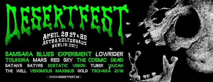 Le mois passé, les premiers noms de l’édition 2017 du Desertfest Berlin, festival ayant lieu du 28 au 30 avril, étaient dévoilés. Cinq nouveaux noms ont été annoncés! Il s’agit de Mars Red Sky, Samsara Blues Experiment, Tuber, Wucan et The Well! Ils viennent s’ajouter à Lowrider, Toundra, Satan’s Satyrs, The Cosmic Dead, et Ecstatic Vision.