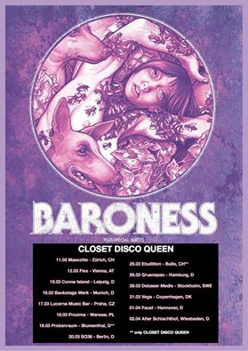 Les Suisses du groupe de kraut experimental de Closet Disco Queen se joignent à la tournée de Baroness pour leur «Winter European Tour » pour quelques dates. Le duo, composé de Jona Nido et Luc Hess, a été sur la route constamment depuis la sortie de son album éponyme en juin 2015.