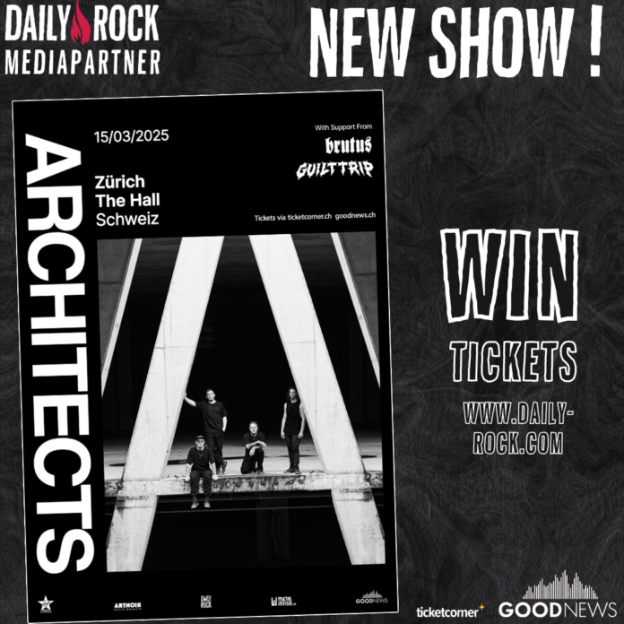 Concours Terminés CONCOURS // Architects (Invitations) By Daily Rock - 26 novembre 2024 0 FacebookTwitterWhatsAppLinkedinEmailTelegram Tentez votre chance pour gagner des invitations pour le concert de Architects + Brutus + Guilttrip qui aura lieu le 15 mars 2025 à The Hall de Zurich !