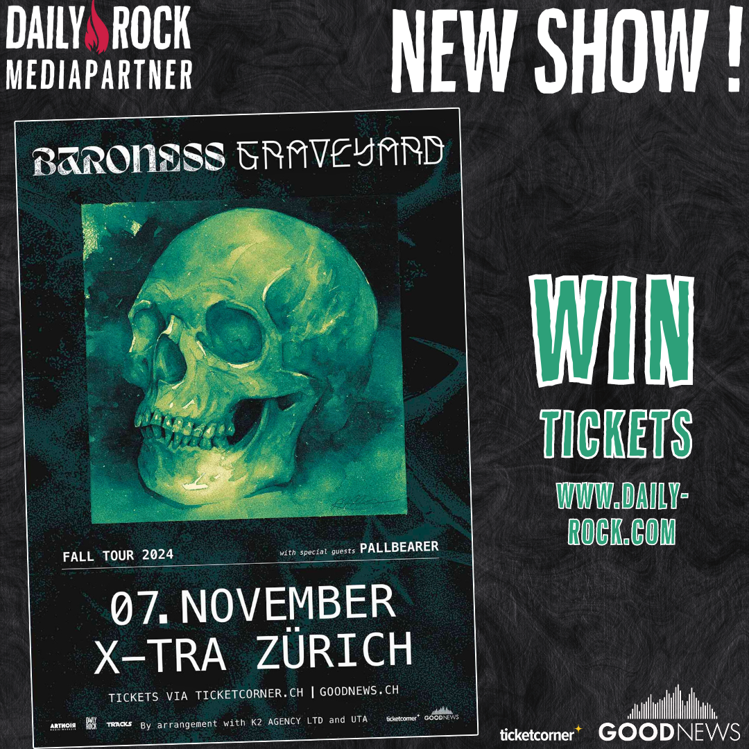 C’est l’occasion de tenter sa chance pour gagner des invitations pour le concert de BARONESS & GRAVEYARD qui aura lieu le 5 novembre 2024 à l’X-Tra de Zurich !