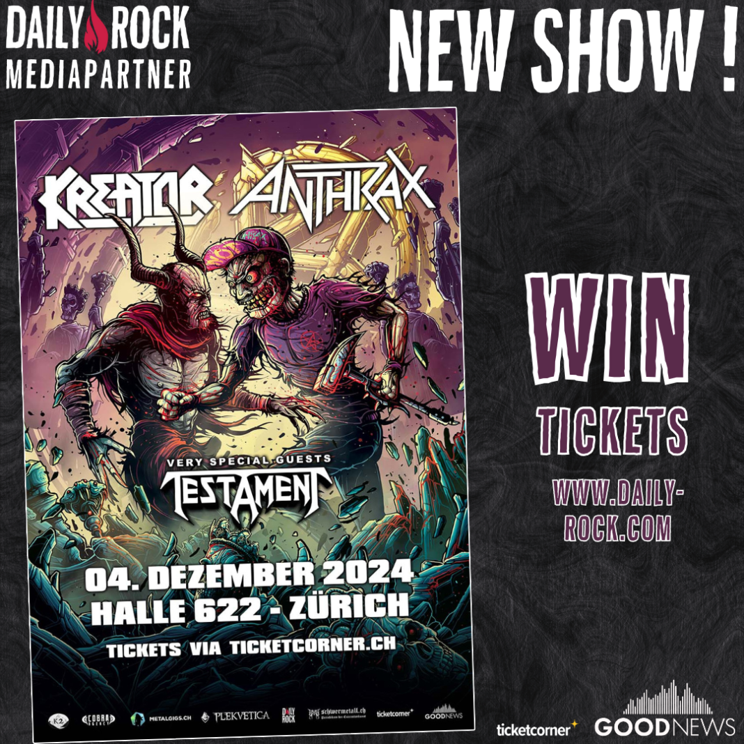 C’est l’occasion de tenter sa chance pour gagner des invitations pour le concert de Kreator + Anthrax + Testament qui aura lieu le 4 décembre 2024 à Zürich !