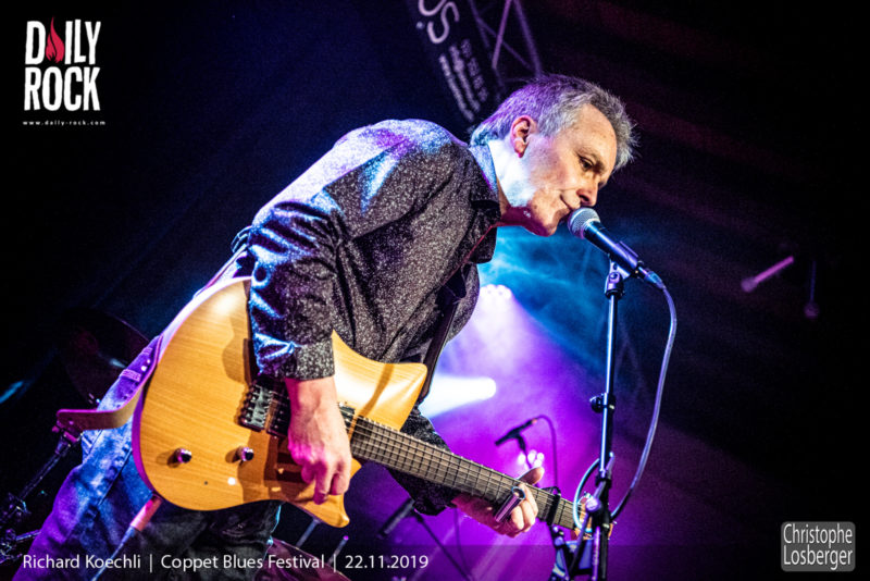 Richard Koechli (vocals, guitar). Richard Koechli & Blue Roots Company trio @ Coppet Blues Festival, Jazz&Co, Coppet (Vaud), Switzerland, 22.11.2019. (c) Christophe Losberger