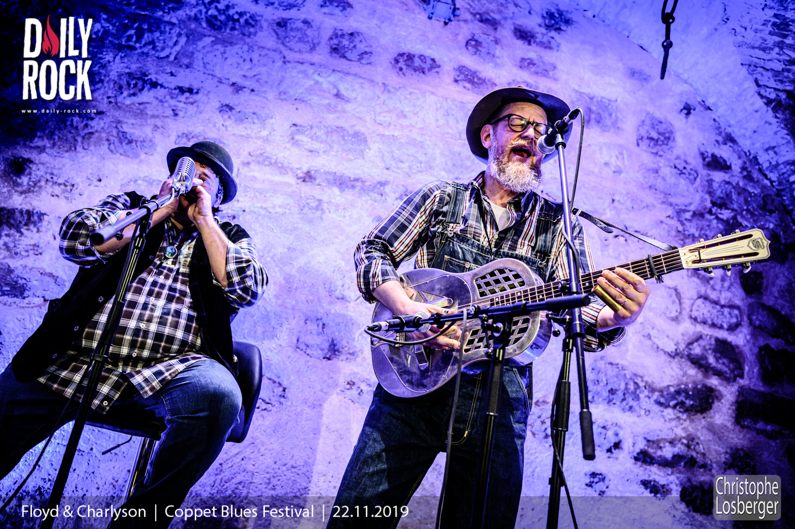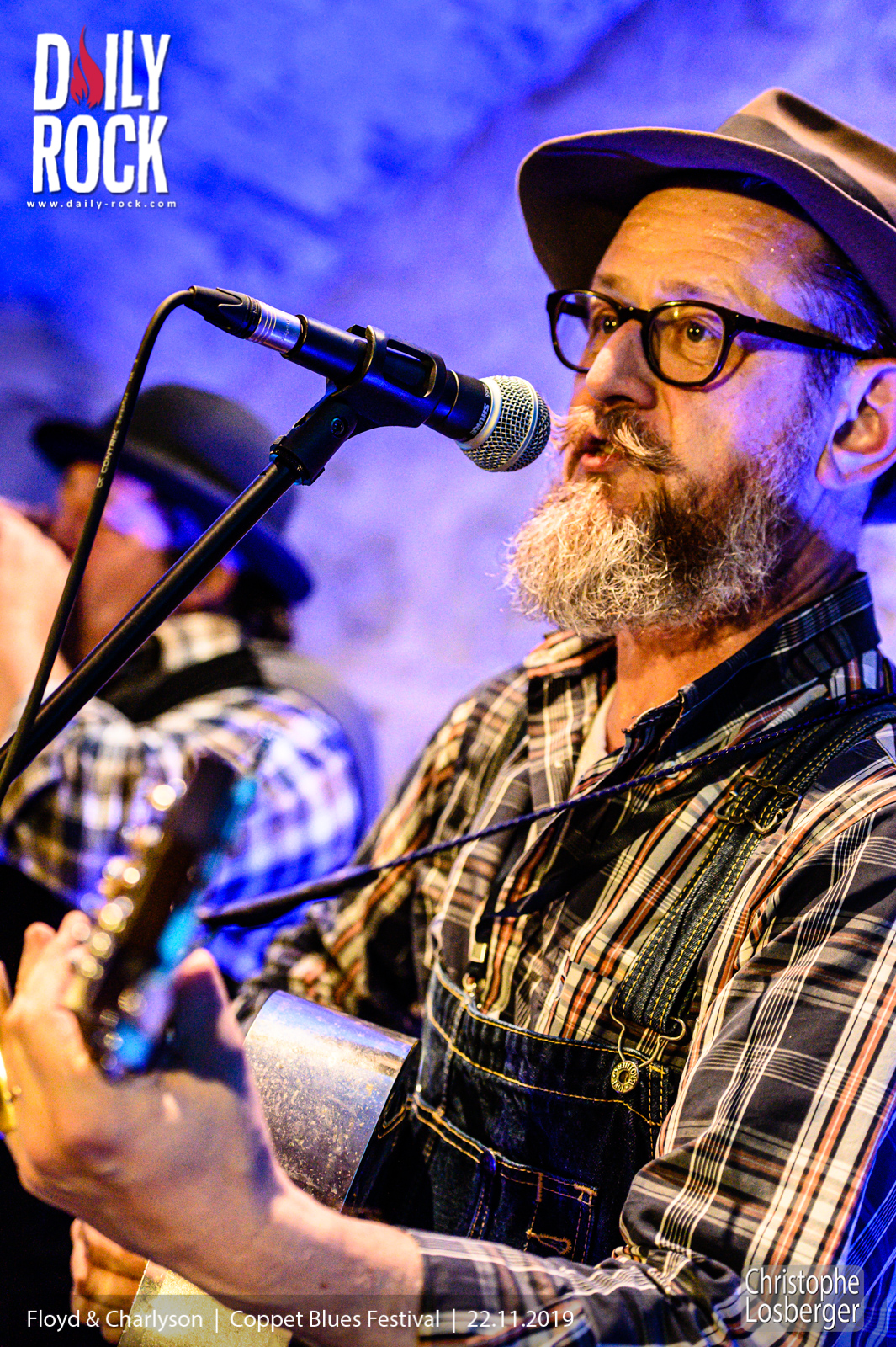 « Floyd Beaumont » Enno Geissler (vocals, guitar, banjo), Stef « Charlyson » Turin (harmonica). Floyd & Charlyson @ Coppet Blues Festival, Jazz&Co, Coppet (Vaud), Switzerland, 22.11.2019. (c) Christophe Losberger