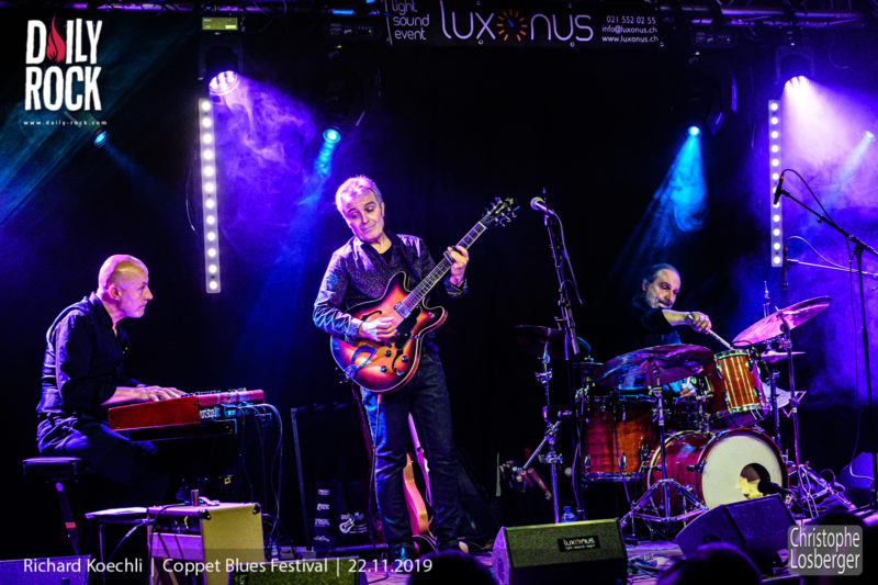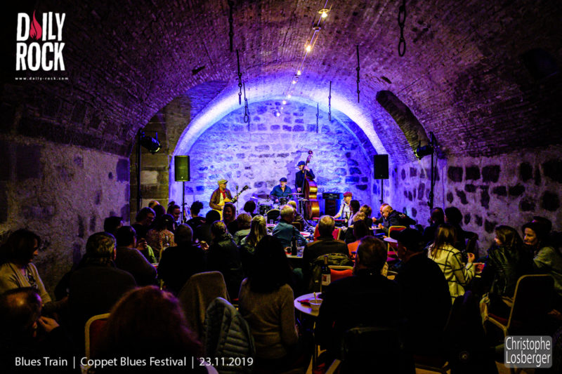 Thierry Lucotte (guitar, vocals), Jean-François « Jeff D-Corey » Decoret (keyboards), Pierre-Pascal Quinodoz (drums), Guido Bistarelli (double bass). Blues Train @ Coppet Blues Festival, Jazz&Co, Coppet (Vaud), Switzerland, 23.11.2019. (c) Christophe Losberger