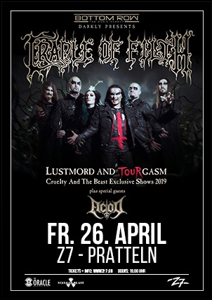 Dans le cadre de leur tournée « Lustmord And Tourgasm », le groupe de black metal britannique Cradle Of Filth sera de passage en Suisse pour fêter les vingt ans de l’album « Cruelty And The Beast », sorti en 1998. Dani Filth et ses acolytes emmèneront le public dans leur univers sombre d’horreur extrême en rejouant l’album dans son intégralité le 26 avril 2019 au Z7 à Pratteln.