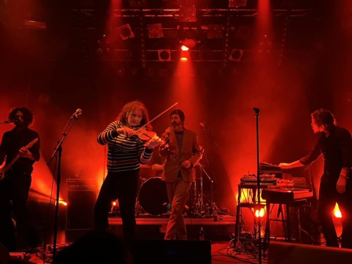 Nous le retrouvons au cœur de Crime & The City Solution une demi-heure plus tard, aux côtés des deux plus anciens membres de la formation, Simon Bonney – père fondateur – au chant et Bronwyn Adams – qui a rejoint le groupe lors de la période berlinoise – au violon et au chant. Les Australiens viennent d’éditer un nouvel album très réussi (« The Killer ») sur MUTE, le légendaire label des grands groupes de rock alternatif. Plusieurs titres de ce nouvel opus sont joués pour la première fois en live et ma foi, ils sonnent très bien. On apprécie particulièrement « River of God », ballade hallucinée que l’on dirait droit sortie du répertoire de Nick Cave et « Witness » aux accents de « Ghosteen ». Simon Bonney est magnifique sur scène, habité par ses chansons aux volutes hypnotiques qui envoûtent le public.