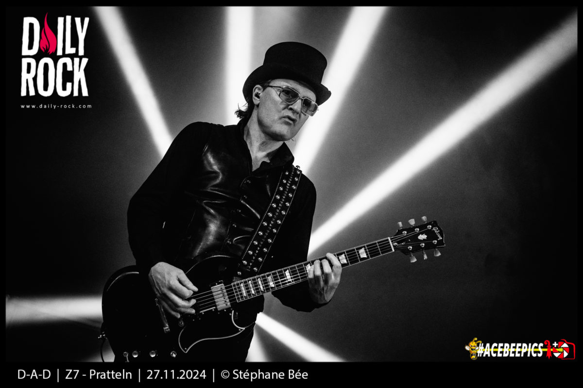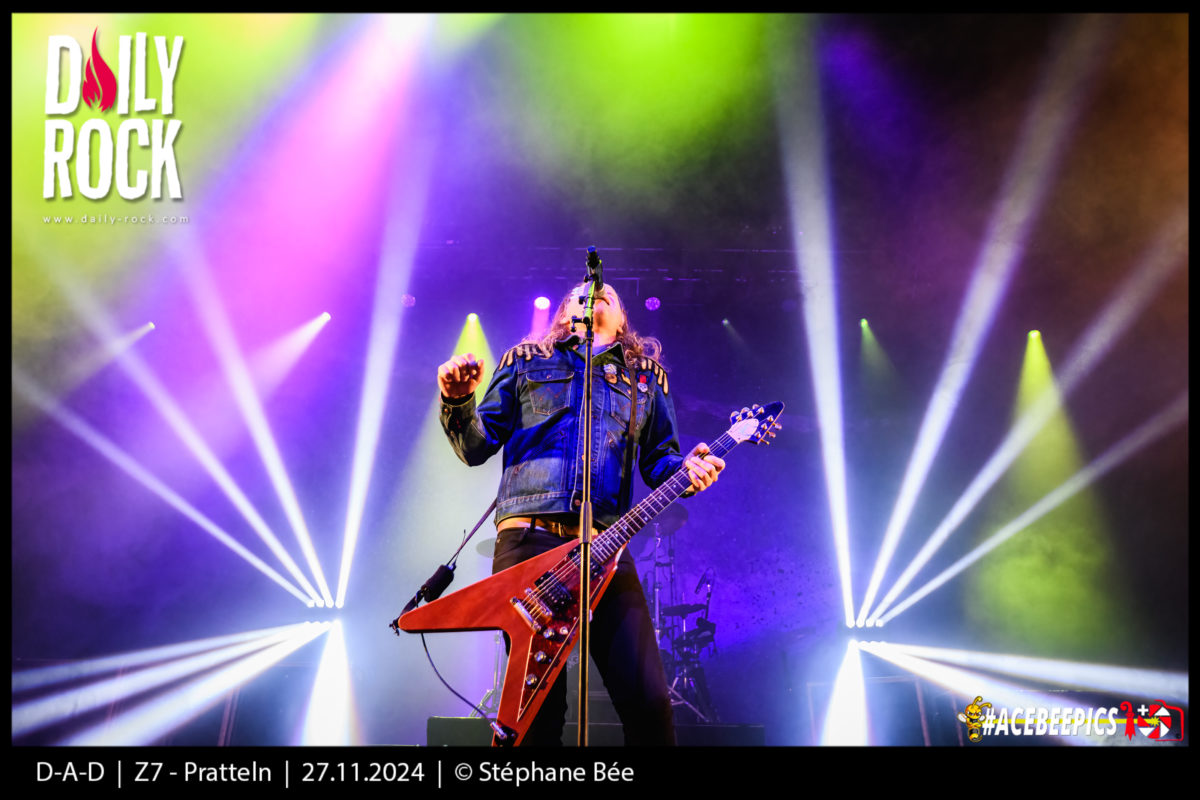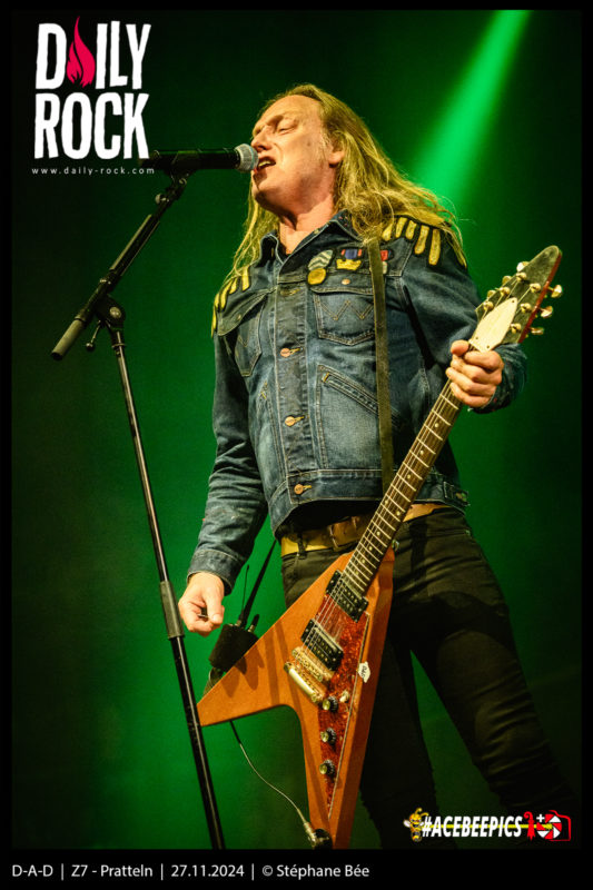 Quatre rappels viendront clore cette chaleureuse et intense soirée rock avec des interprétations d’anthologie de l’immortel ‘Sleeping My Day Away’ et du délicat ‘Laugh ‘n’ a ½’ à la guitare acoustique (Jacob + Jasper). Pas de crise de la quarantaine chez D-A-D et on s’en réjouit !