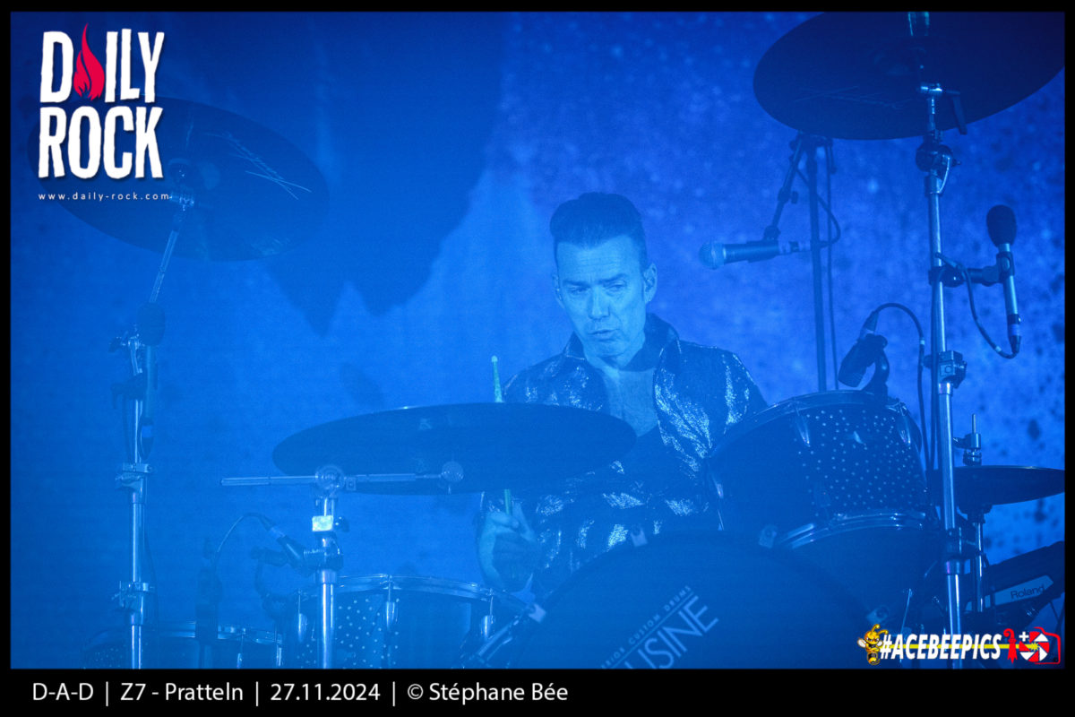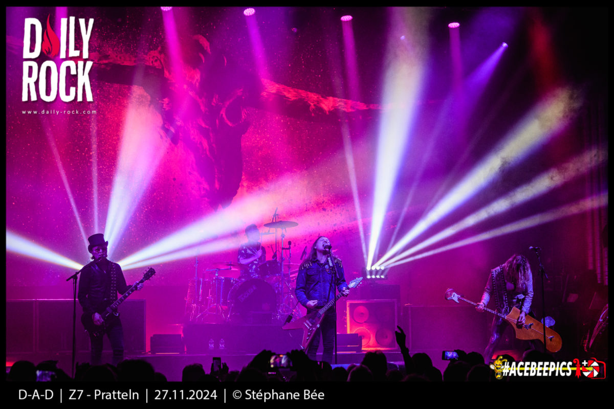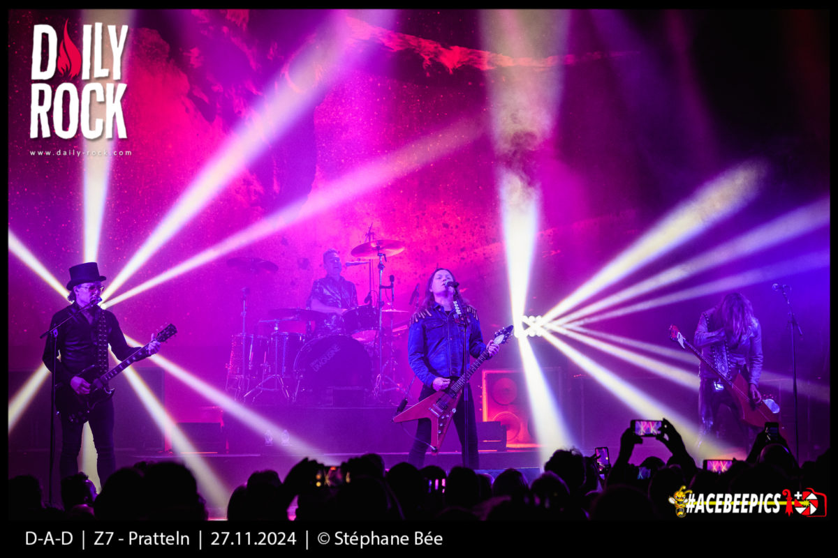 40 ans déjà que D-A-D (à l’origine Disneyland After Dark) balance son rock pêchu, original et teinté d’humour sur toutes les scènes de la planète. Mon Dieu que le temps file ! On se rappelle de la bombe musicale qui avait éclaté en 1989 avec la sortie de leur troisième album, ‘No Fuel Left for the Pilgrims’ et que de chemin parcouru depuis lors ! C’est tout naturellement à la Z7, l’une des plus belles salles de Suisse, dans laquelle ils ont joué plusieurs fois par le passé, que le quatuor danois posait ses amplis pour souffler les bougies de son savoureux gâteau musical avec ses fans helvétiques.