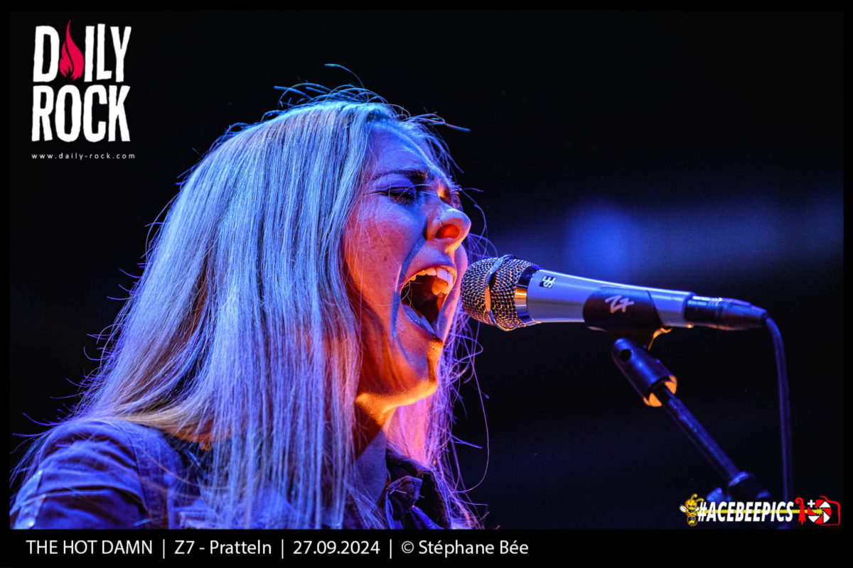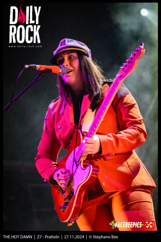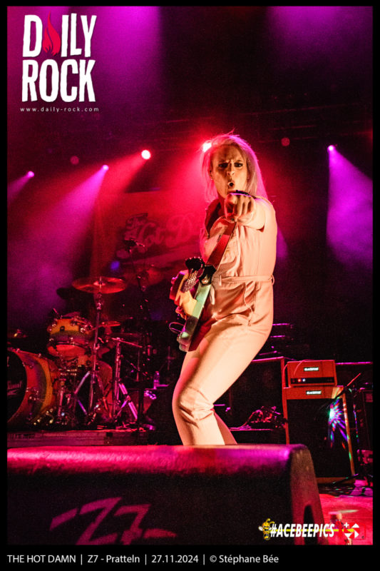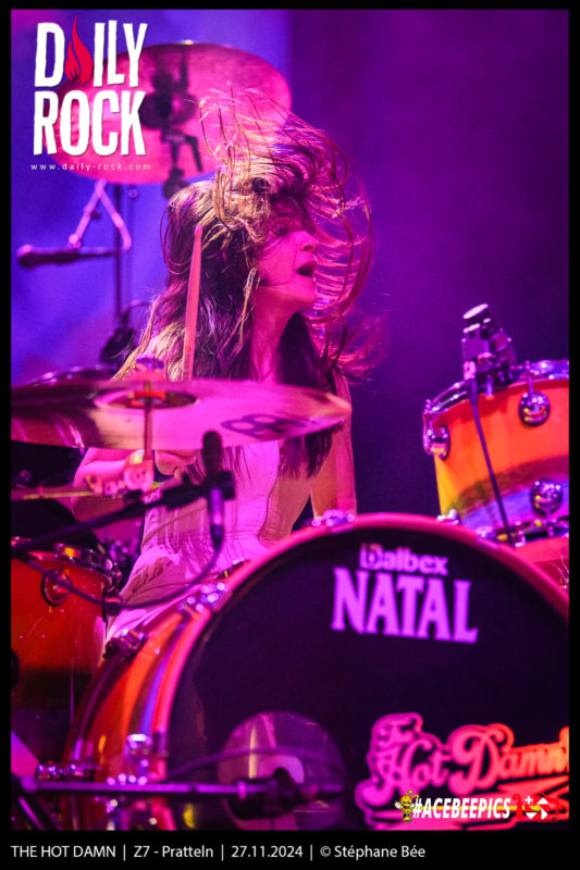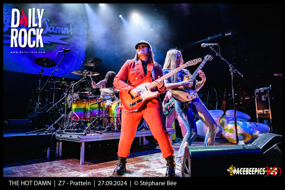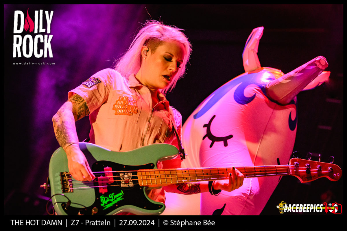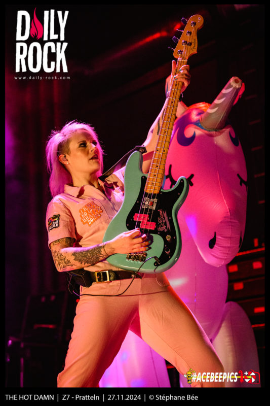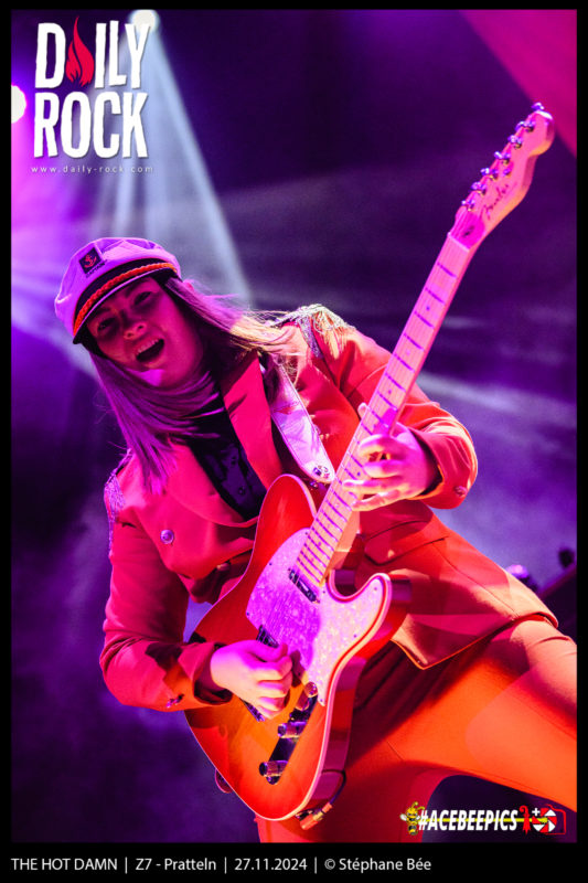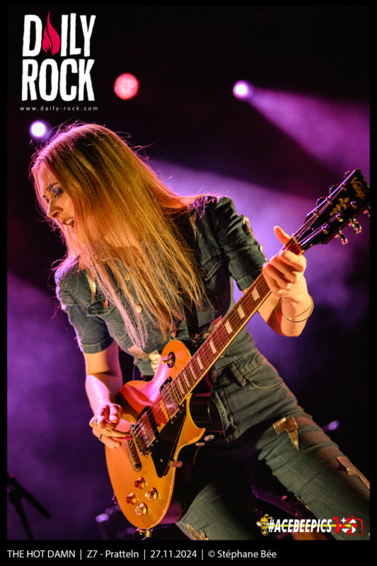 C’est un autre quatuor, 100% féminin, qui lance les festivités avec un rock festif et entraînant teinté de pop. Belles harmonies vocales, jolis soli de guitares et sourire aux lèvres, les Britanniques de The Hot Damn! ont trouvé la recette pour se mettre le public dans la poche. On pense à Thundermother, The Gem, ou le côté lumineux de la Force du Girlschool des débuts. Moment humoristique lorsque leur mascotte – une grande licorne gonflable – est tombée sur la bassiste, provoquant un bref mouvement de surprise et de panique chez celle-ci. Quatre filles dans le vent à la positive attitude, ce n’est pas pour nous déplaire.
