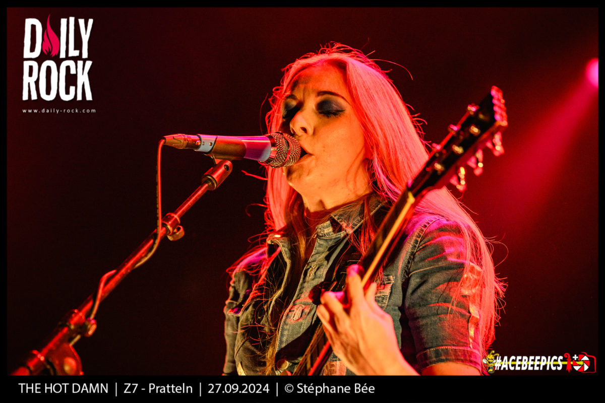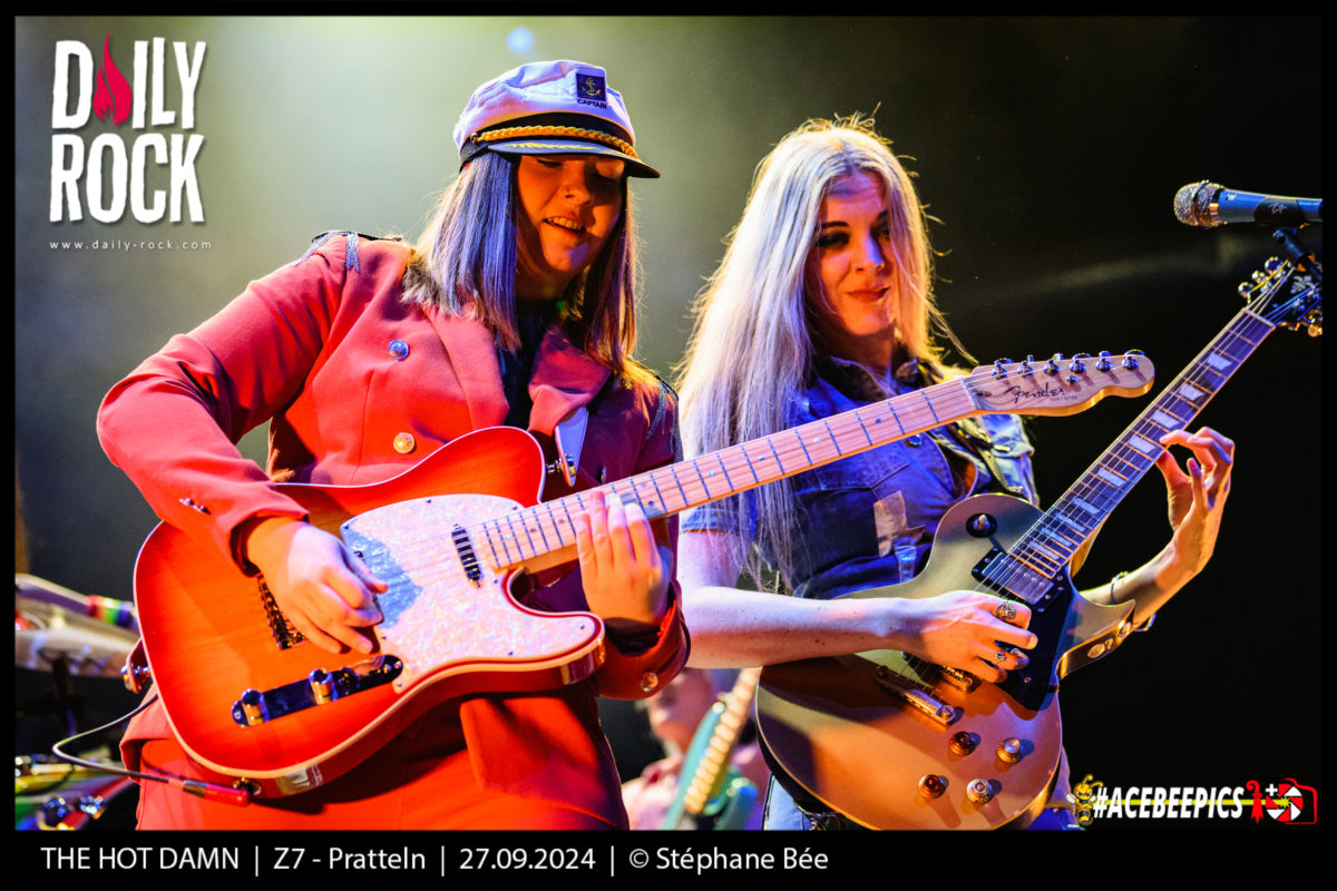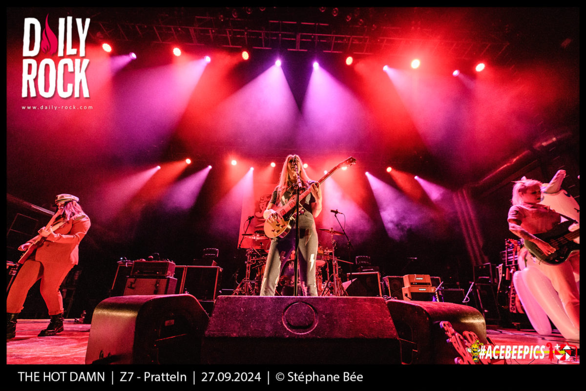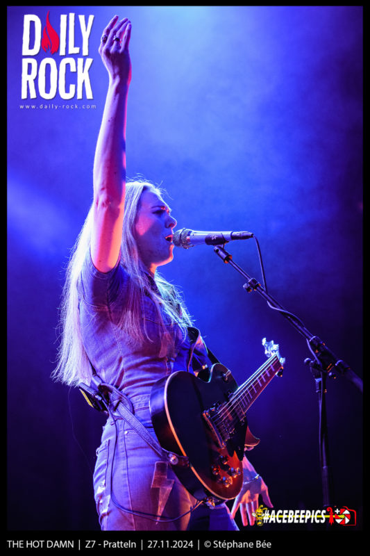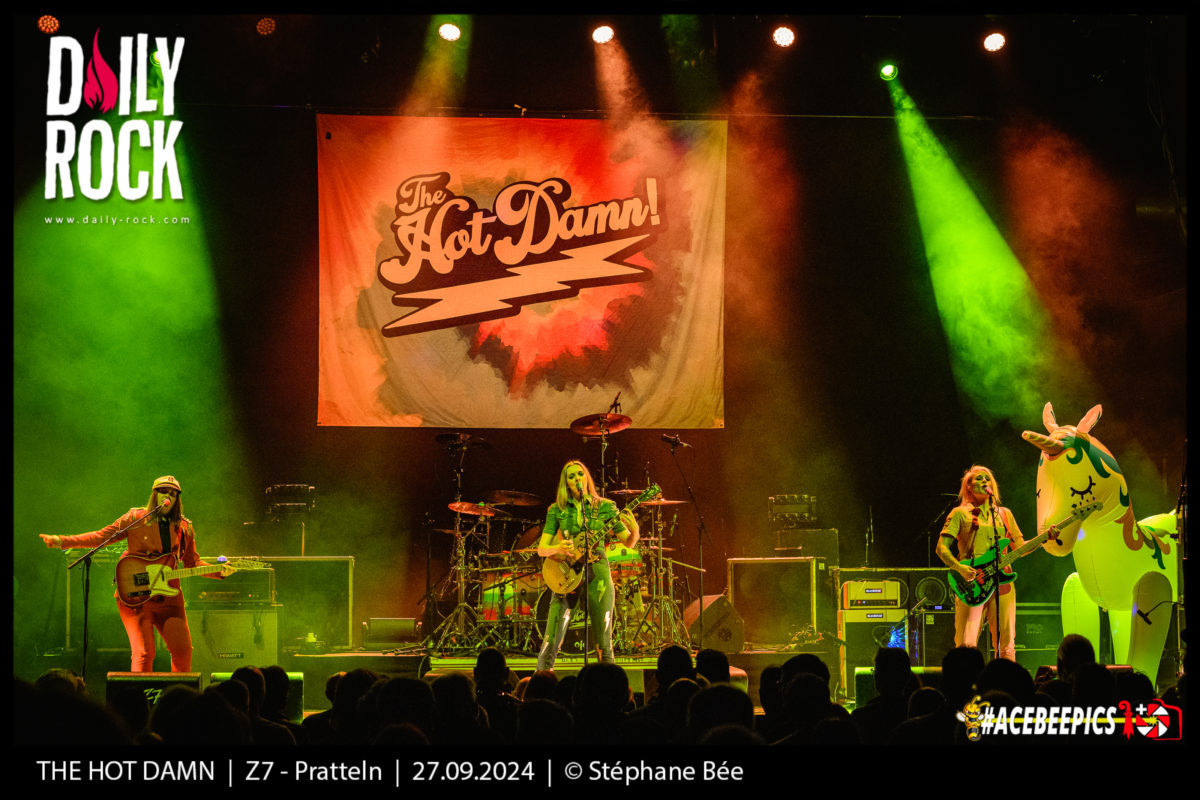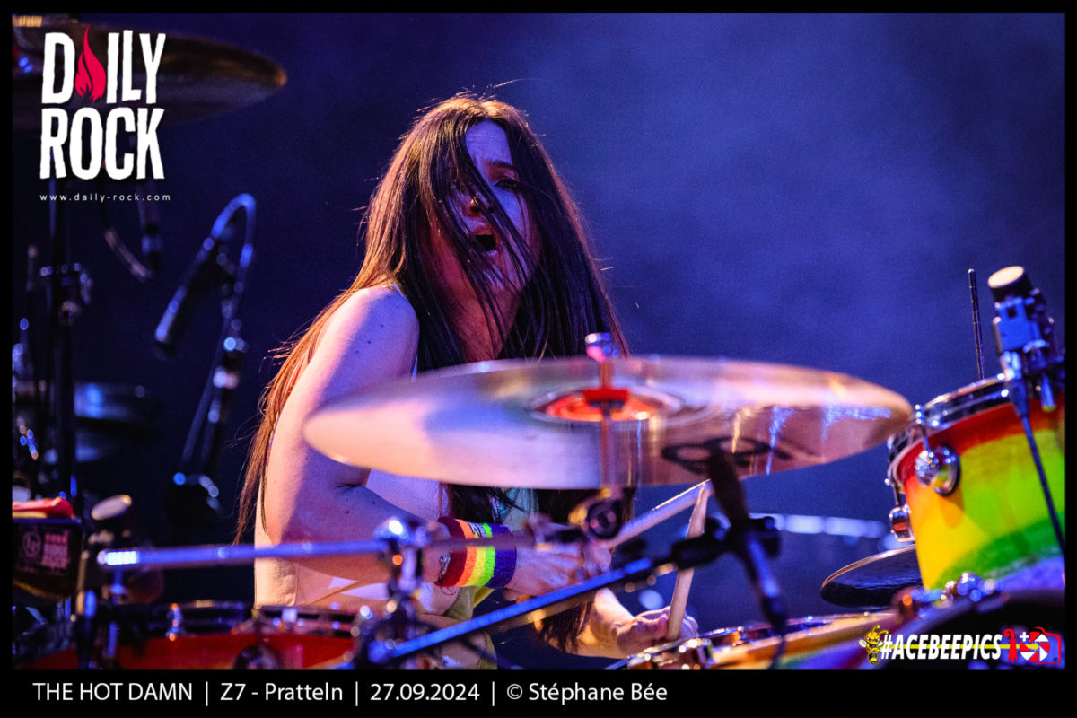 C’est un autre quatuor, 100% féminin, qui lance les festivités avec un rock festif et entraînant teinté de pop. Belles harmonies vocales, jolis soli de guitares et sourire aux lèvres, les Britanniques de The Hot Damn! ont trouvé la recette pour se mettre le public dans la poche. On pense à Thundermother, The Gem, ou le côté lumineux de la Force du Girlschool des débuts. Moment humoristique lorsque leur mascotte – une grande licorne gonflable – est tombée sur la bassiste, provoquant un bref mouvement de surprise et de panique chez celle-ci. Quatre filles dans le vent à la positive attitude, ce n’est pas pour nous déplaire.