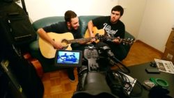André : Alors, justement c’était des répètes les deux sur des petits amplis et des guitares… nos premières guitares d’entrée de gamme…