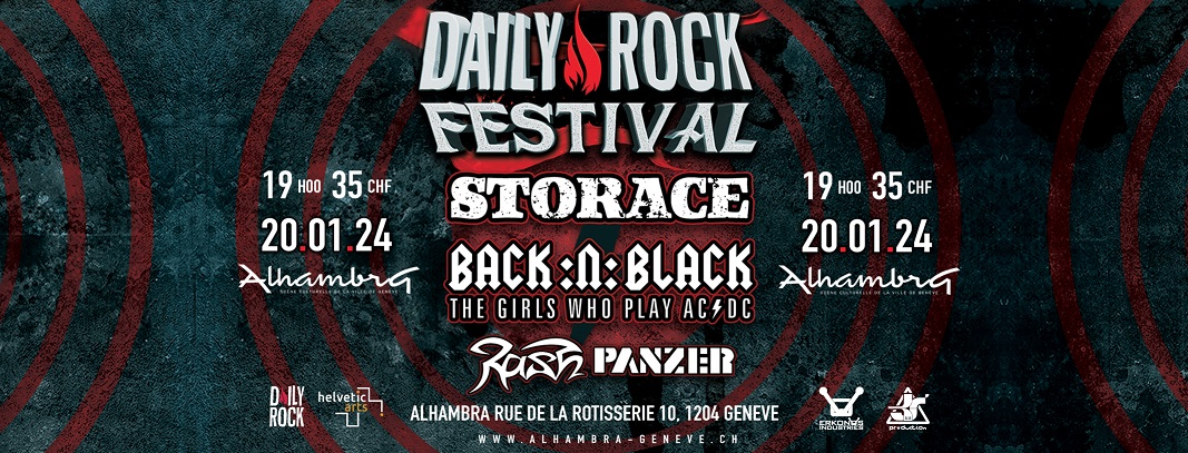 The Daily Rock Festival is back! On January 20th, join us for a hard rocking at the Alhambra with 3 Swiss artists. The evening will be a support event for Daily Rock, the only independent rock-oriented media in French-speaking Switzerland. In addition to the usual tickets, there are several options for supporting Daily Rock, either with a subscription or by buying a « Rock’N’Roll » ticket which includes a « goodie bag » with artist merchandise!
