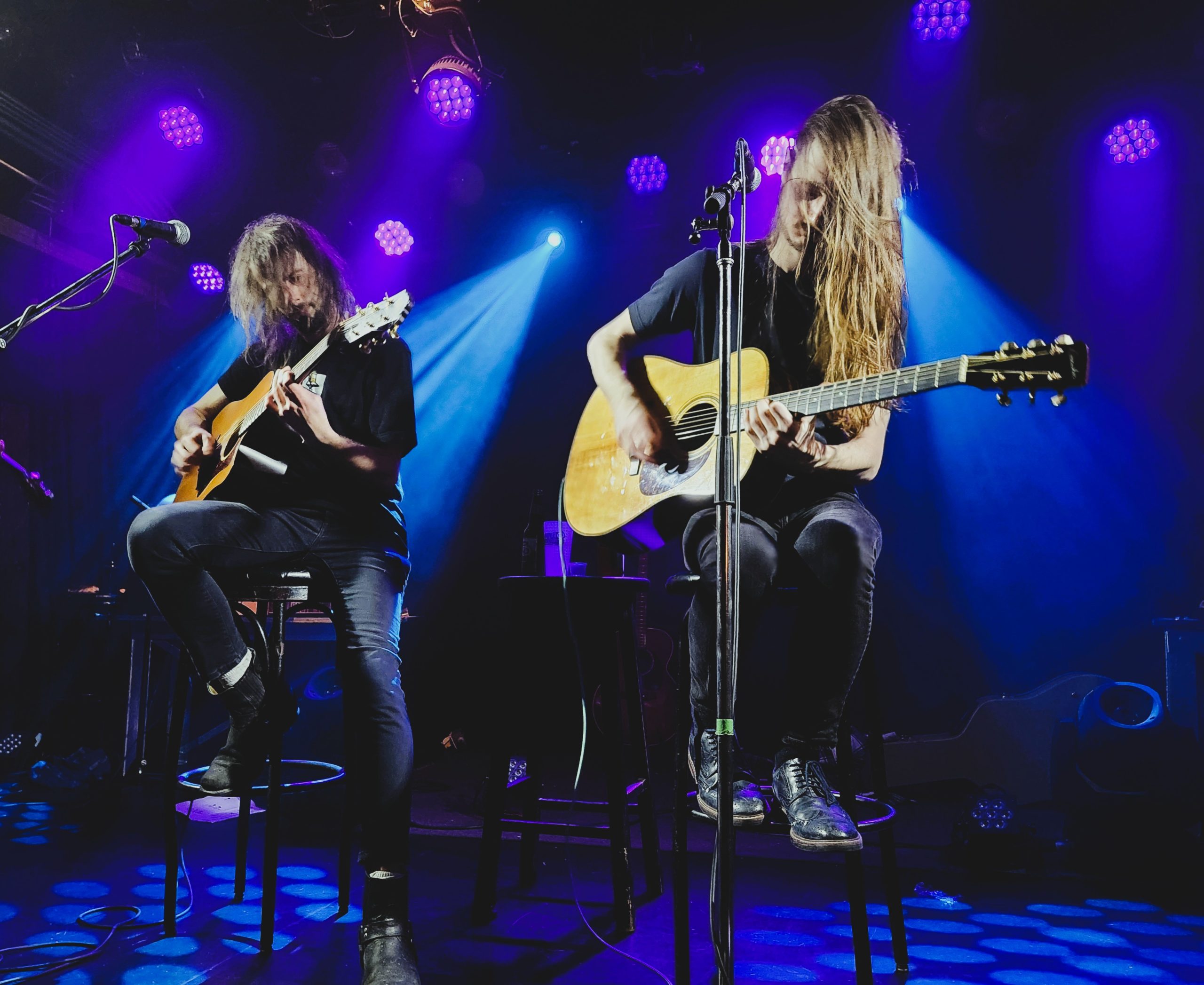 Le spectacle a débuté avec Dany Nicolas, auteur-compositeur-interprète, accompagné de son batteur Sylvain Plante. Ensemble, ils ont offert une prestation grunge et intense, mêlant des mélodies folk minimalistes à des textes poétiques et revendicateurs. Le batteur, toujours souriant, débordait d’énergie et ponctuait l’ambiance d’expressions faciales amusantes. Dany, quant à lui, arborait une mine narquoise, un brin cynique mais sympathique. Son talent résidait dans sa capacité à créer une connexion immédiate avec l’auditoire, transformant la salle en un rassemblement amical. Musicalement, la guitare était abrasive et distordue, soutenue par une batterie martelée qui renforçait l’esprit grunge. Parmi les moments forts, J’veux la lune, Tomber du Bund et Le soleil se touche ont suscité une vive réaction des spectateurs. La voix ébréchée du chanteur, accompagnée d’onomatopées, a marqué l’empreinte de cette performance, le tout soutenu par un joual assumé. La guitare artisanale qu’il a sortie pour Le chien ne ment jamais a particulièrement résonné dans la salle, provoquant un enthousiasme général.