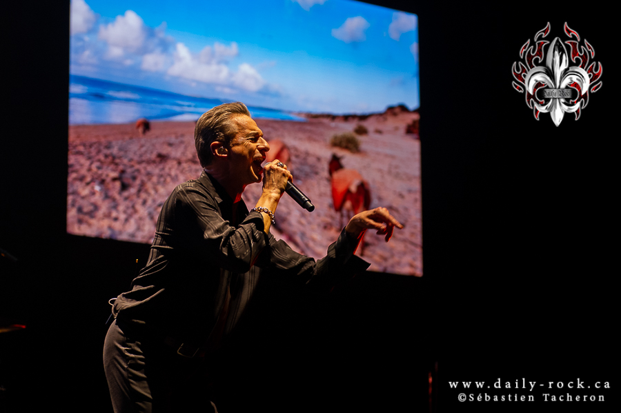 L’alternance de morceaux émotionnels de leur répertoire passé et présent, Precious, Speak to Me, avec des titres plus rebelles, I Feel You, John The Revelator, rend le show très équilibré. Équilibre que l’on retrouve également dans la parfaite symbiose entre les voix des deux hommes. Celle de Gahan, baryton, est rehaussée par celle de son acolyte de toujours, le ténor Martin L. Gore. Le voici justement qui s’avance pour sa partie solo. Le génial compositeur au timbre si émouvant nous offrira A Question Of Lust et Soul With Me pour reprendre notre souffle et nous envelopper de sa douce présence. Les émotions s’enchaînent au fil des morceaux. C’est World In My Eyes qui a été choisie pour rendre hommage à leur compagnon de toujours, Andrew Fletcher, décédé prématurément en mai 2022. Presque un an déjà… Ghosts Again, dernier single en date, nous rappelle donc bien que nous ne sommes que de passage et prône ainsi l’urgence à vivre intensément.