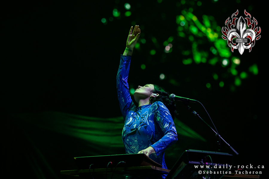 La soirée débute avec Kelly Lee Owens et sa techno pop envoûtante. La musicienne galloise envoie l’air de rien quelques bons sorts pour hypnotiser un public encore sage. Belle consécration pour cette artiste électronique dont les adeptes de sons triturés vont courir écouter ses albums studio. L’excellent hors d’oeuvre passé, c’est affamés que les fans québecois attendent les monstres sacrés.
