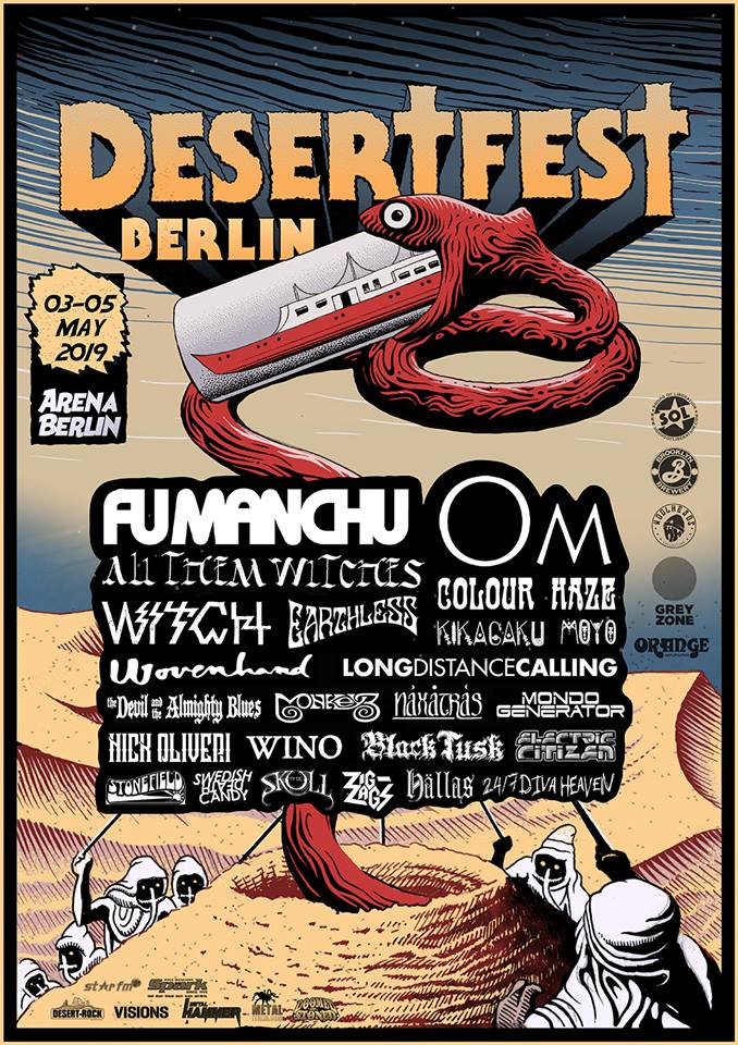 Le festival Desertfest Berlin 2019 aura lieu du 3 au 5 mai 2019 à l’Arena à Berlin. En plus d’un nouveau système de sonorisation et de paiement, les festivaliers pourront profiter d’un espace encore plus grand et se relaxer dans un environnement psychédélique. Le bateau Hoppetosse accueillera même les artistes pour des lives.