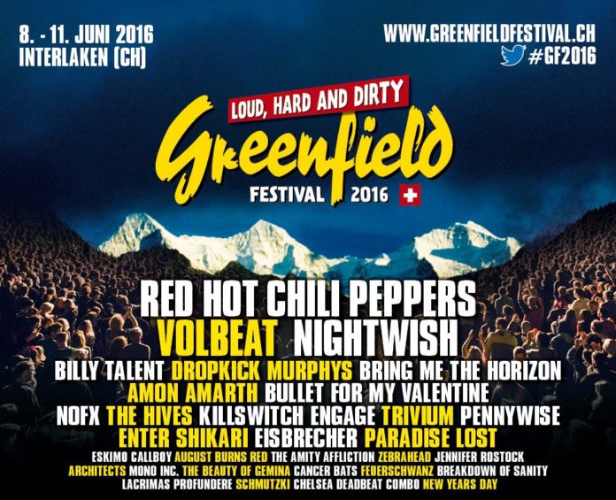 Une deuxième vague de noms ont été annoncés pour le Greenfield festival 2016. On retrouve parmi ces noms les Red Hot Chili Peppers, Volbeat, Nightwish, Billy Tallent, Paradise Lost, Killswitch Engage, New Years Day, Feuerschwanz, The Beauty Of Gemina, Lacrimas Profundere, Architects, Mono Inc., The Amity Affliction.