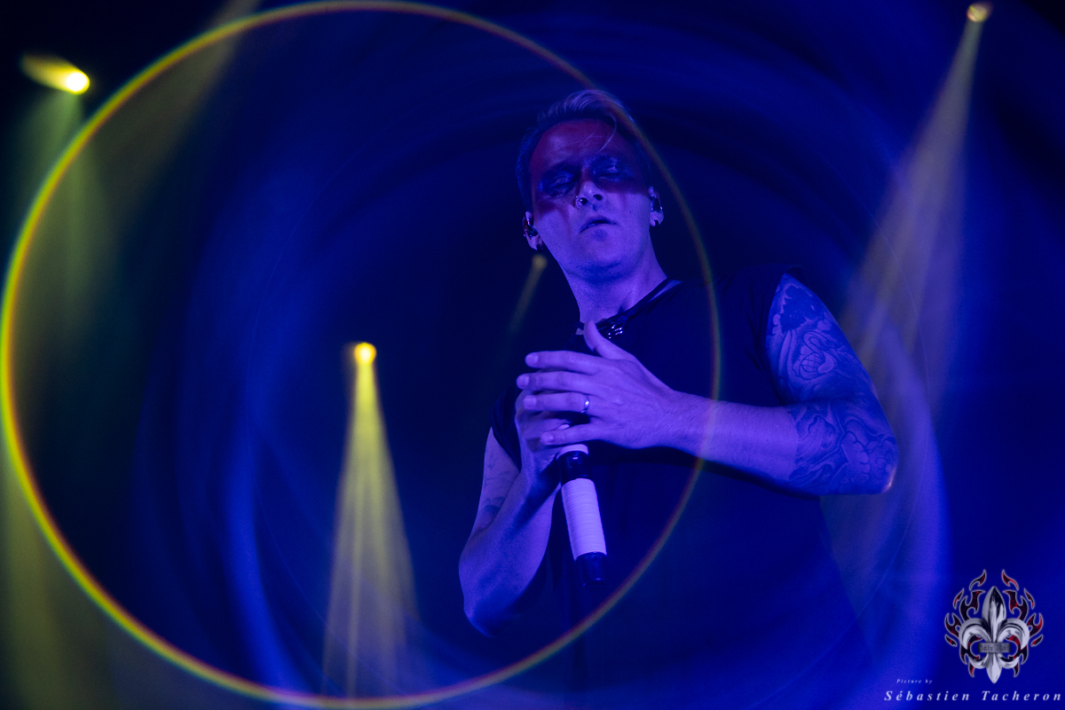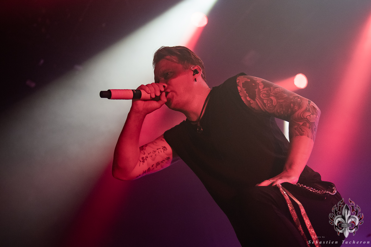 Même s’il a avoué ne pas être au top vocalement ce soir-là, il donne absolument tout. Il parcourt la scène dans tous les sens, arborant tour à tour un large sourire et des grimaces démoniaques qui, en général, ravissent les photographes.