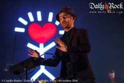 Mais tel le phénix renaissant de ses cendres le groupe nous a prouvé qu’on avait tort. Le choix du théâtre offre une intimité et une proximité particulière, laissant place à des moments a cappella d’une rare intensité. Dionysos nous offre son nouvel album dans un écrin mais n’oublie pas ses fans en manque d’énergie électrique. La setlist varie entre moments d’émotions et moments rock où Malzieu – équipé de lunettes d’aviateurs – surfe sur le public comme à son habitude. Le public romand semble tout de même timide et se rassied à chaque fin de chanson…