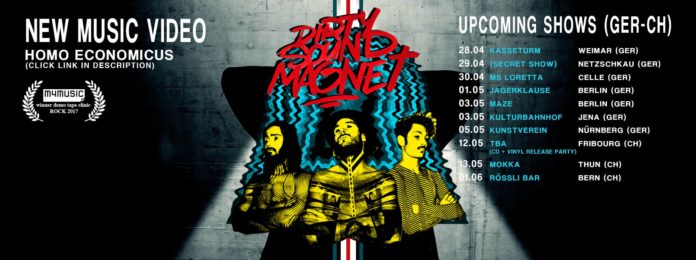 On vous parlait de Dirty Sound Magnet le mois passé, lors des M4Music où le groupe fribourgeois a remporté la Demotape Clinic Rock. Leur nouvel album ‘Western Lies’ sort officiellement vendredi, et le clip Homo Economicus est à voir ci-dessous. Le vernissage aura lieu à la Tour Vagabonde (lien de l’event)