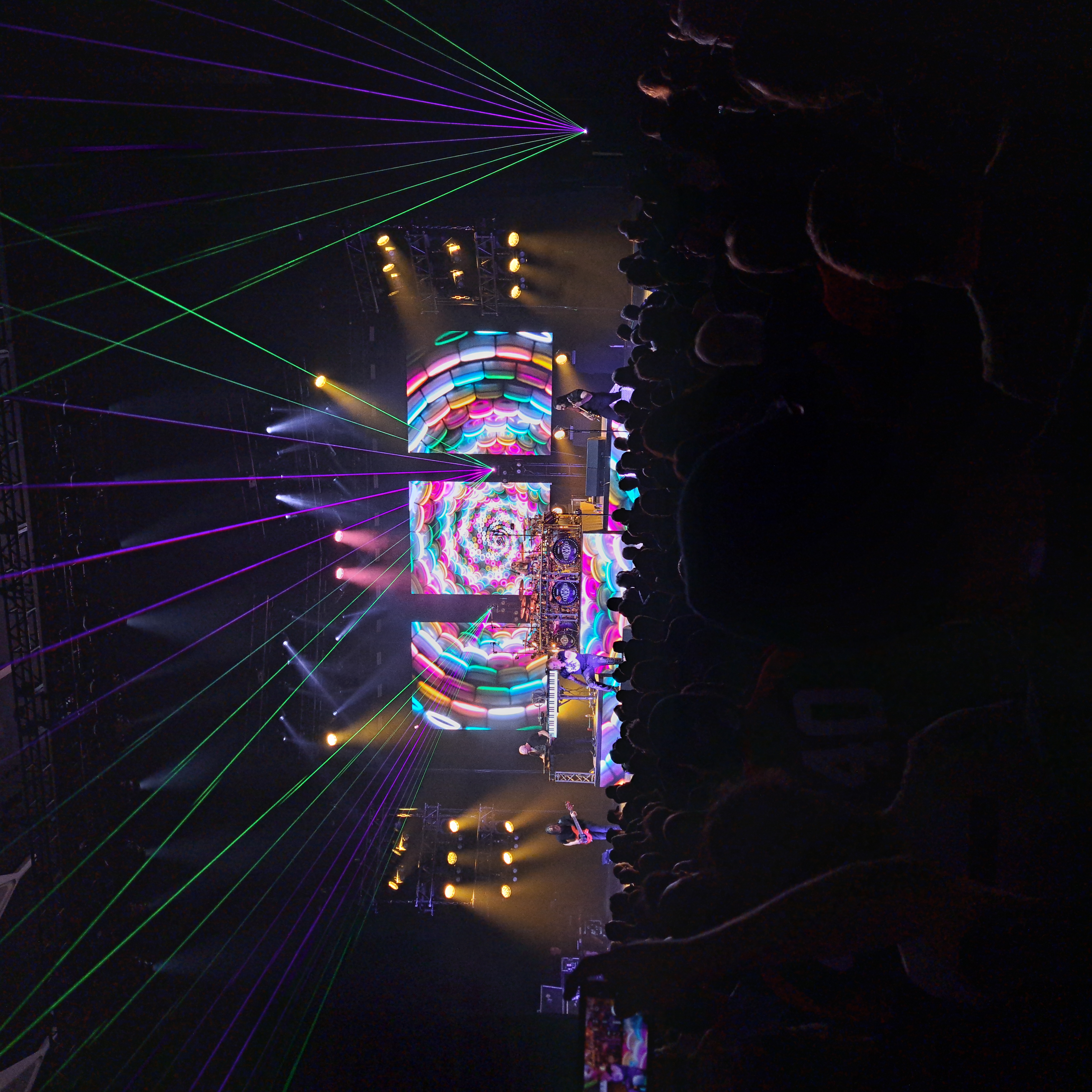 Le concert a également été sublimé par une scénographie visuelle éblouissante. Des projections psychédéliques et rétro-futuristes, parfaitement synchronisées avec la musique, s’accordaient avec des jeux de lumière raffinés et des effets de clair-obscur saisissants. Cette fusion entre son et image a plongé l’audience dans une transe immersive, où chaque note et chaque faisceau semblaient dialoguer avec une précision impressionnante.