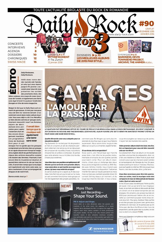 Voilà donc notre dernier numéro de l’année, et celui qui vous durera jusqu’à fin janvier. L’occasion pour nous de vous présenter les sorties des prochains mois, des idées cadeaux, nos cous de coeur musicaux de l’année, et également une fierté sans égal d’avoir le quatuor exclusivement féminin Savages en Une de notre magazine.