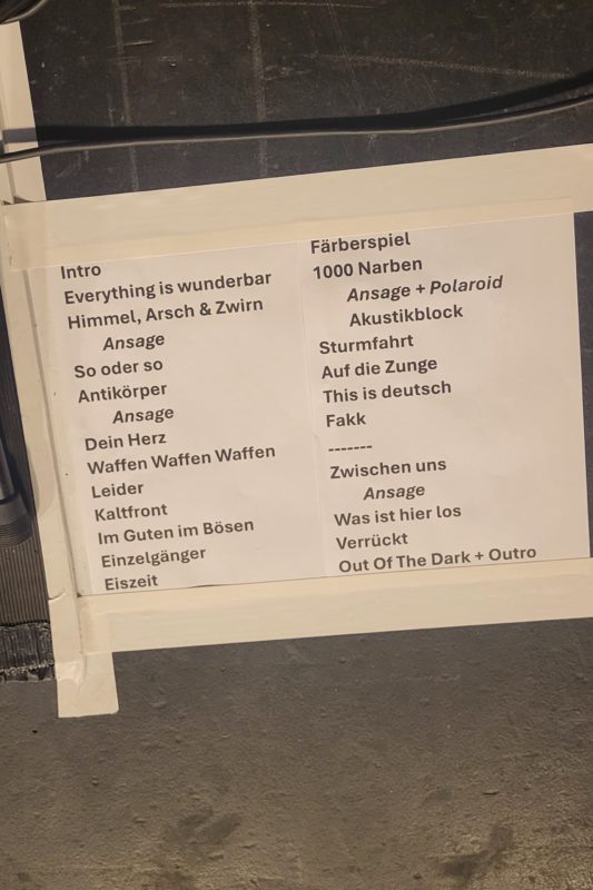 Un show très bien maîtrisé, en parfaite communion avec le parterre de fans qui ne regrettent pas leur déplacement. Les tableaux d’enchaînent superbement entre par exemple un titre joué en habits polaires sous de la fausse neige, un passage unplugged totalement délirant à deux guitares ou encore quelques cours de « langue » en allemand. Autre geste de classe de la part d’Eisbrecher : des remerciements et des félicitations au premier groupe. Un vrai show généreux (plus de 20 titres) d’Eisbrecher qui faisait du bien et aura sûrement convaincu tout le monde de revenir à leurs prochains concerts. Tout était vraiment wunderbar, comme ils le disent si bien.
