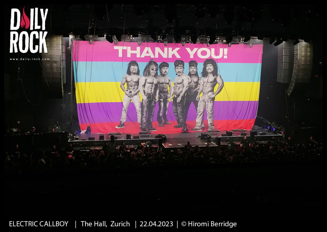 Les allemands enchaînent deux morceaux supplémentaires avant de faire tomber le rideau. Là, on a le droit à un super montage photo du groupe avec des corps d’hommes fort musclés sur un fond arc-en -ciel. Bien que le groupe soit presque à deux heures de jeu, tout le monde a la même chose en tête : « Ils vont pas partir sans nous faire Pump It! »